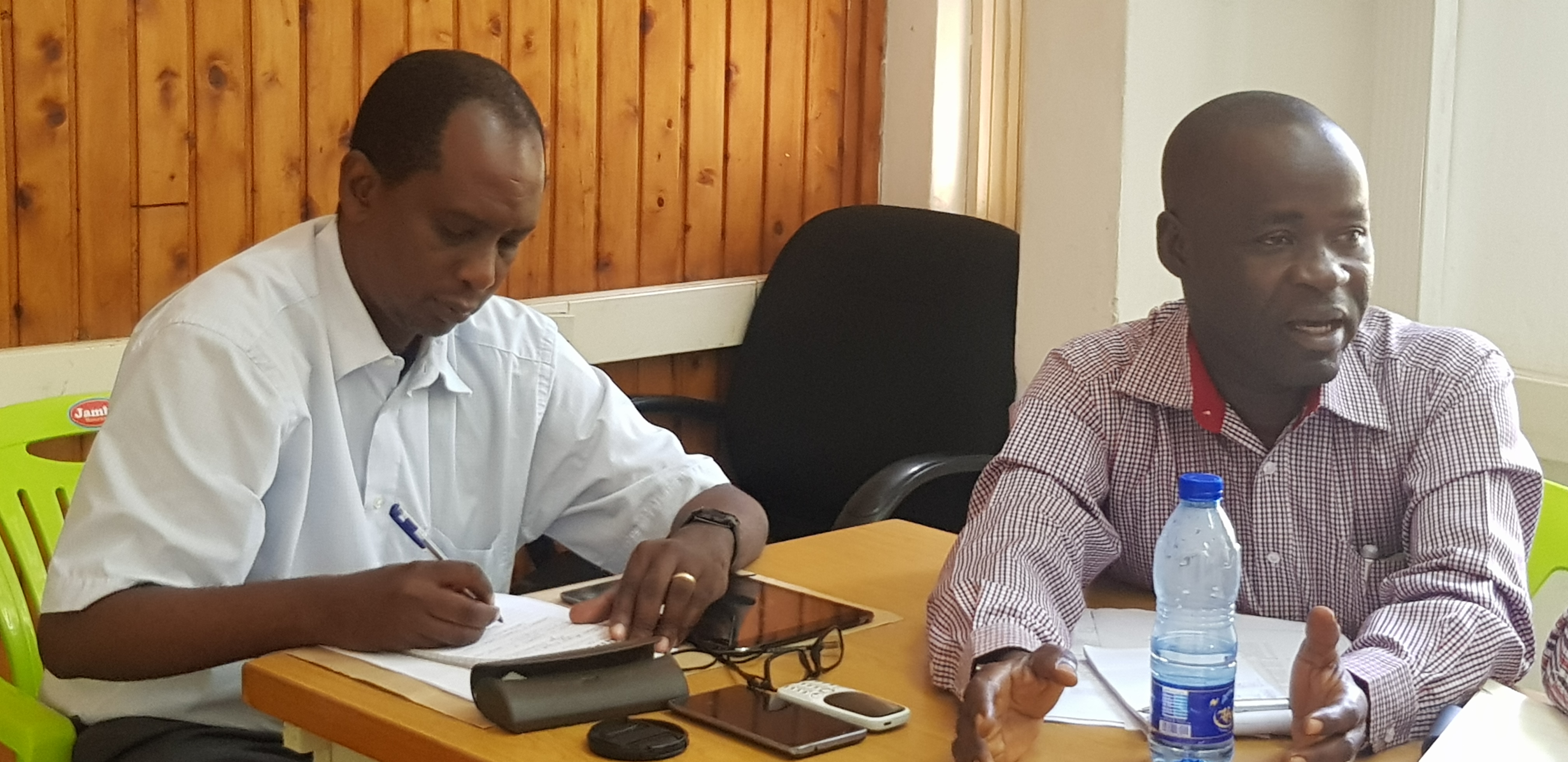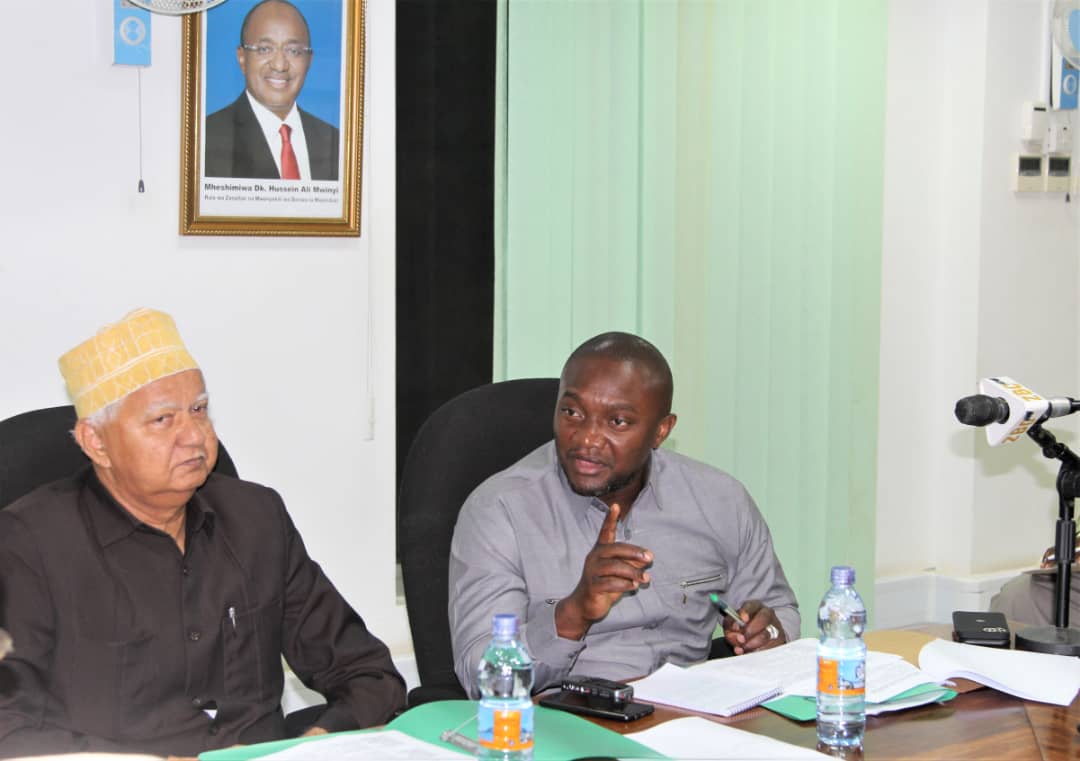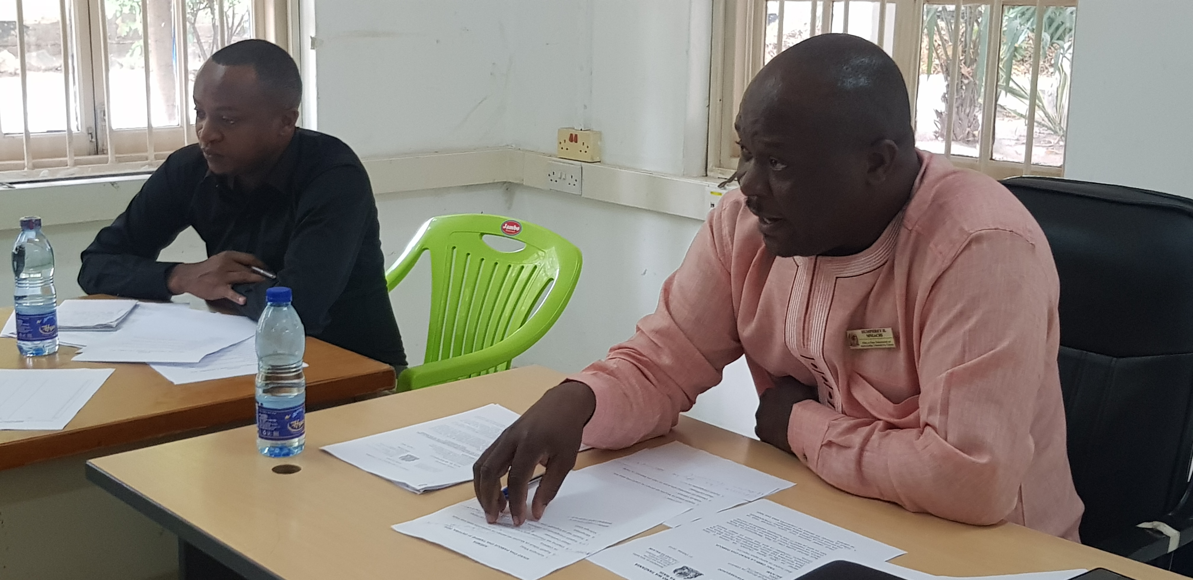 Mkurugenzi wa Idara ya Mipango ya Rasilimaliwatu (OR-UUUB- Zanzibar Bw. Khamis Juma akitoa ufafanuzi kwa Makatibu Wakuu wakati wa makabidhiano ya ofisi za Sekretarieti ya Ajira, Mazizini- Zanzibar.