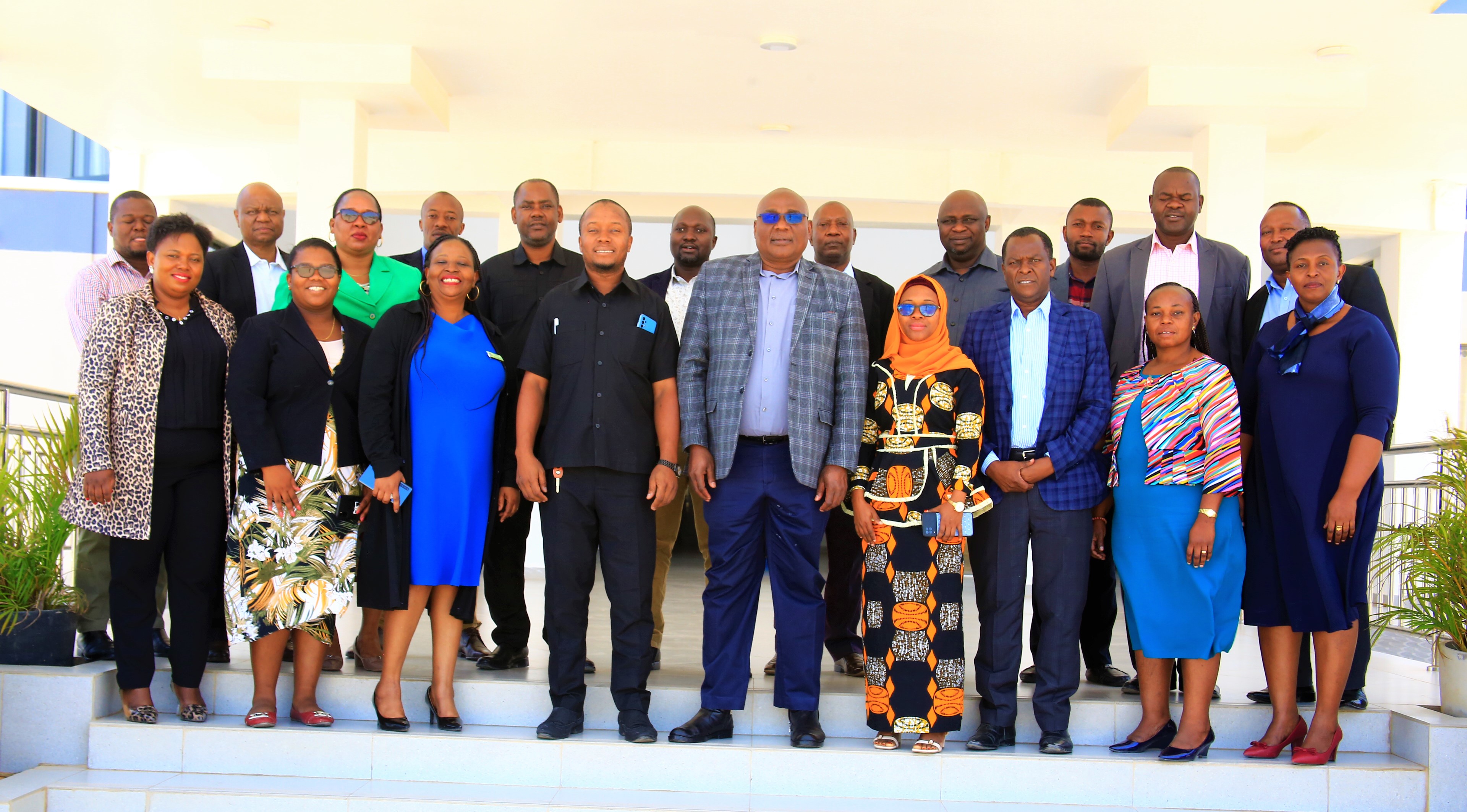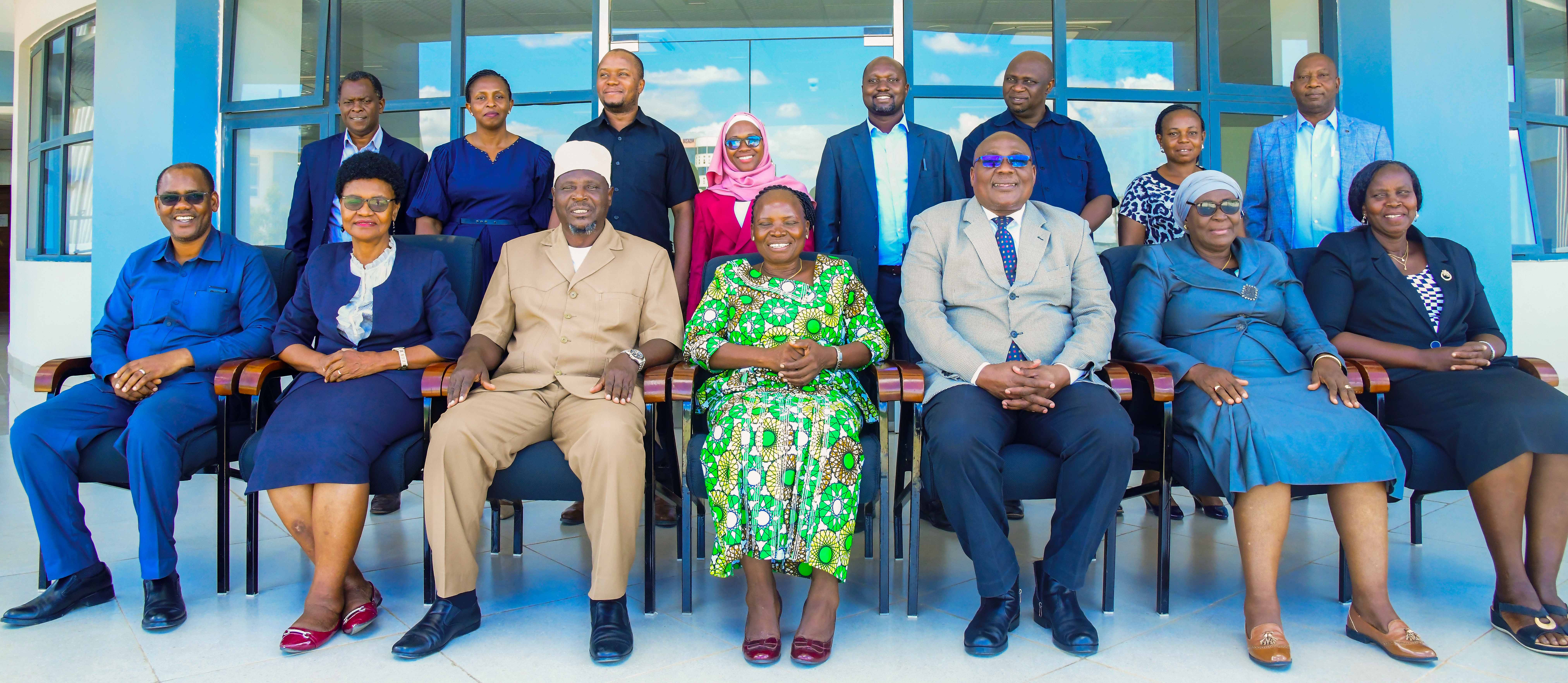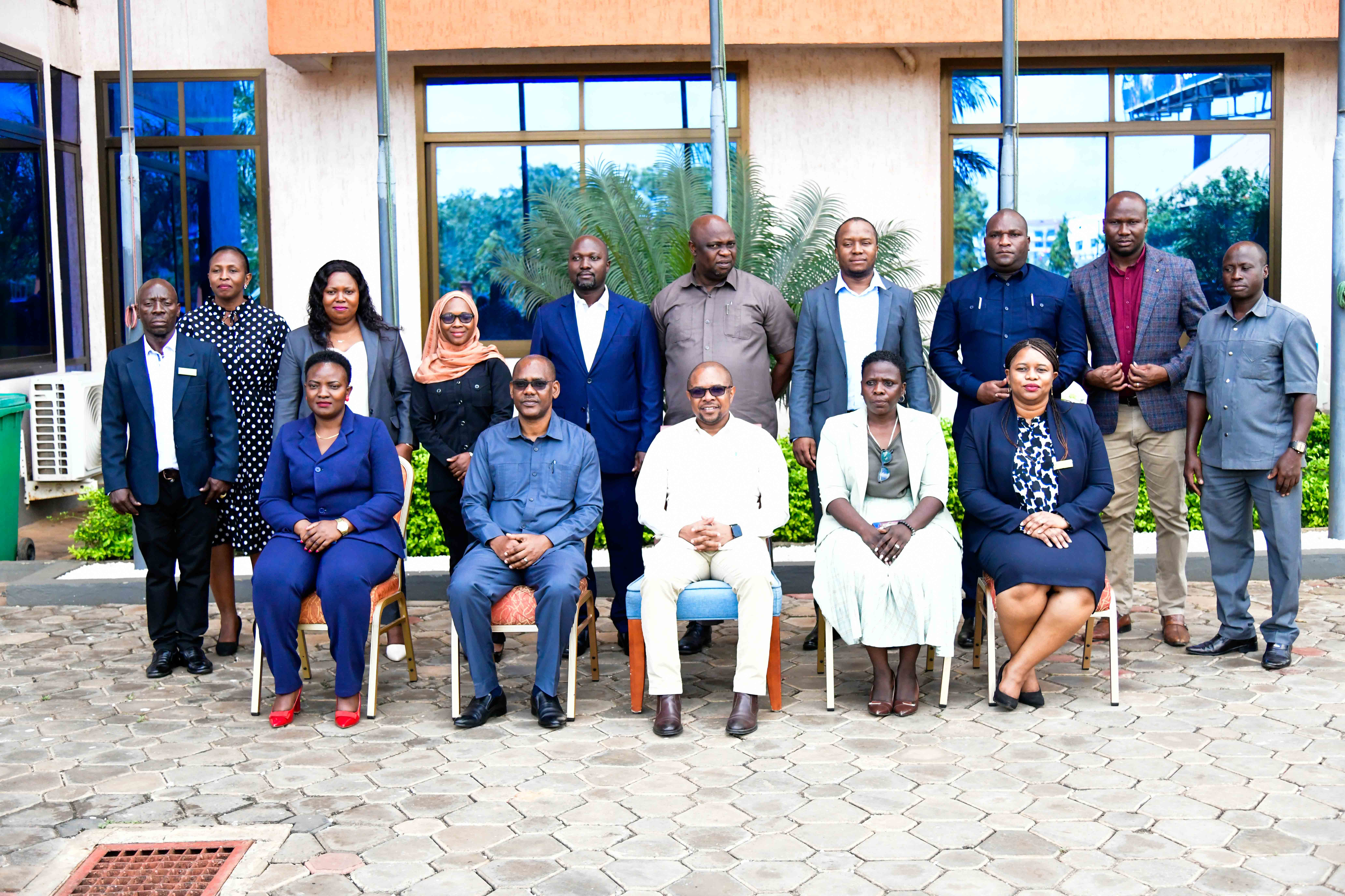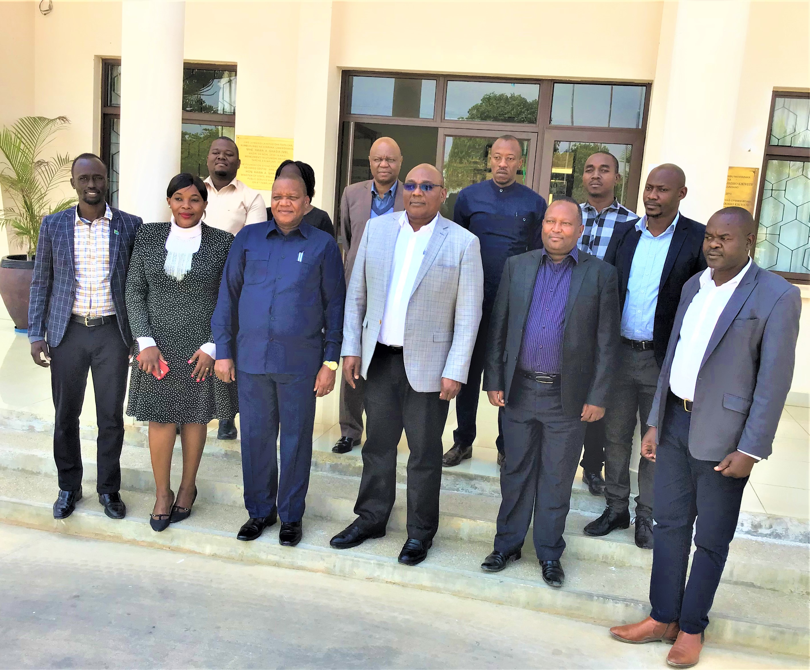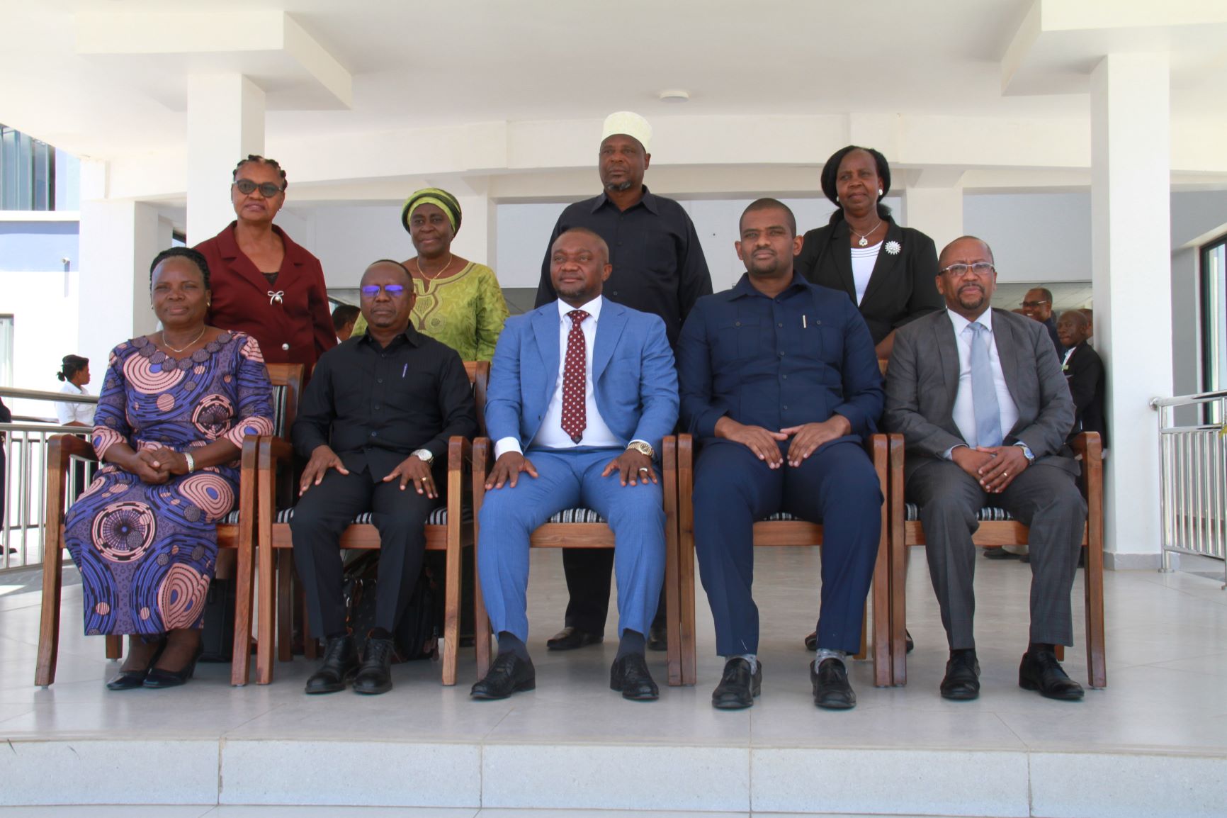 Katibu Mkuu, (OR-MUUB), Dkt. Laurian Ndumbaro akiwa Katibu Mkuu, (OR-UUUB), Bw. Yakout Hassan Yakout pamoja na Viongozi na Watendaji wengine wakati wa makabidhiano ya ofisi za Sekretarieti ya Ajira, Mazizini-Zanzibar