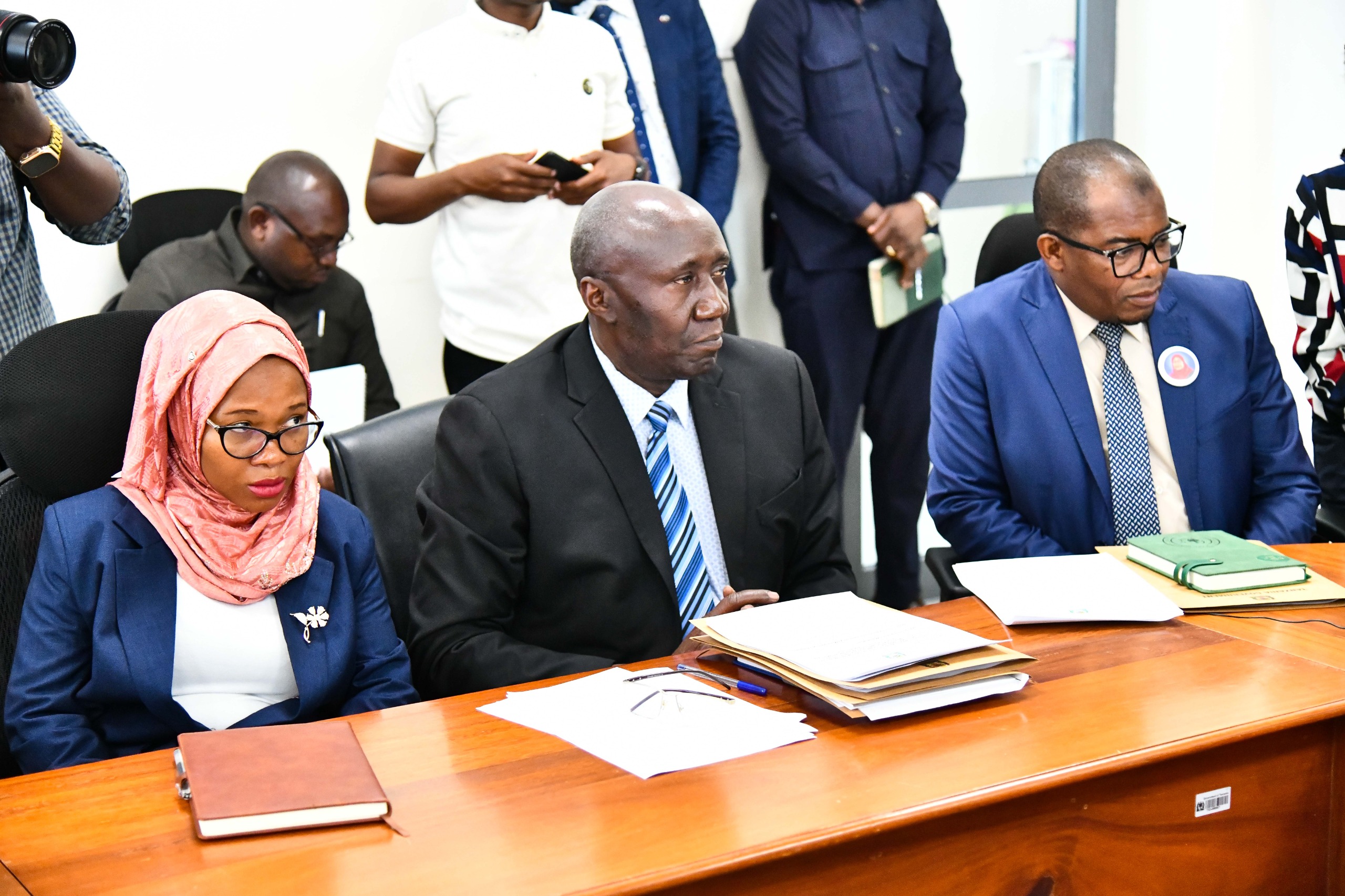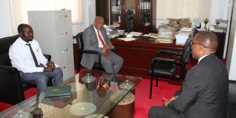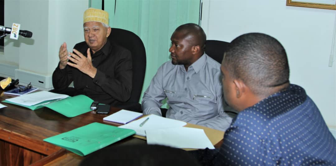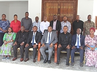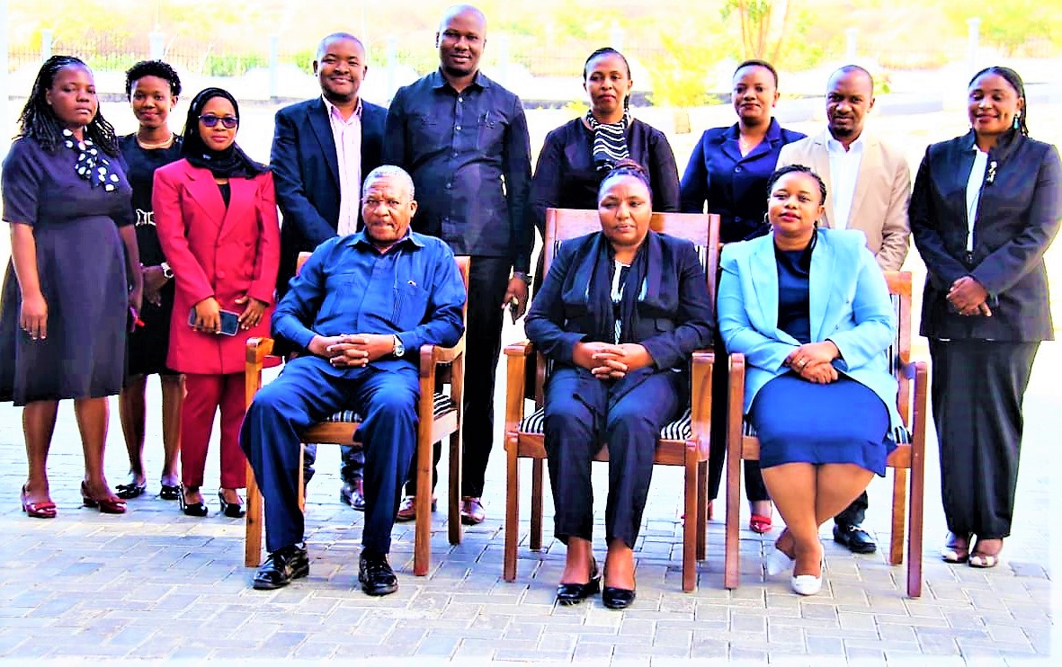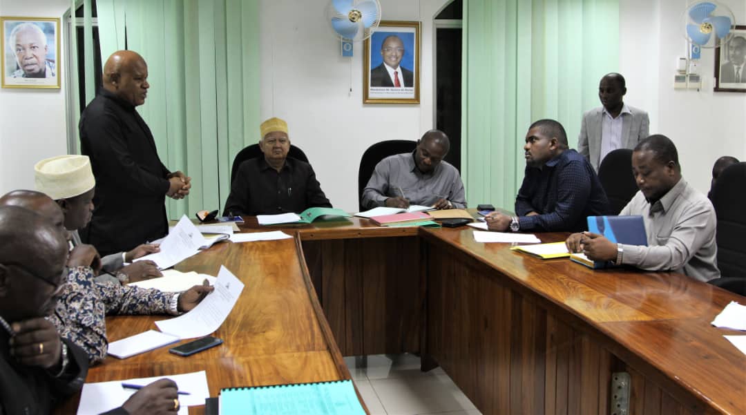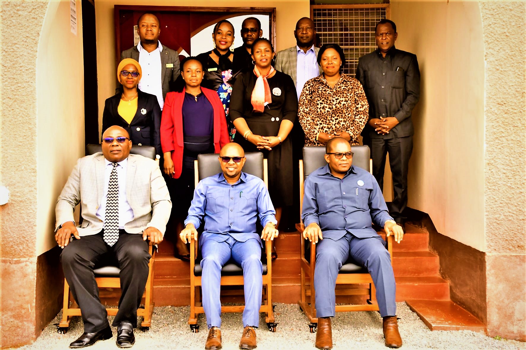 Katibu Mkuu, (OR-MUUB), Dkt. Laurian Ndumbaro akiwa Katibu Mkuu, (OR-UUUB), Bw. Yakout Hassan Yakout pamoja na Viongozi na Watendaji wengine wakati wa makabidhiano ya ofisi za Sekretarieti ya Ajira, Mazizini-Zanzibar