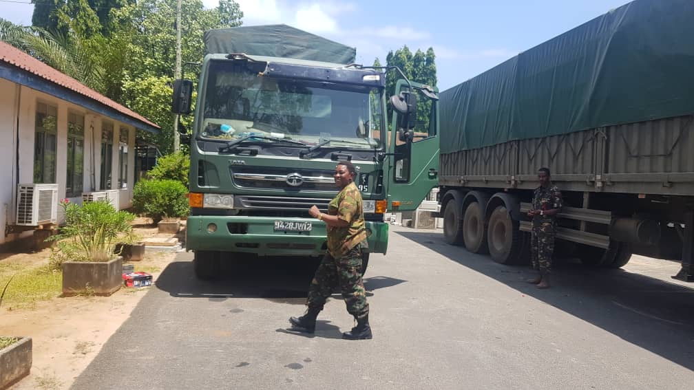 Moja ya gari la jeshi likifungwa mlango tayari kuondoka mara baada ya kushusha mizigo kwenye ofisi za Sekretarieti ya Ajira jijini Dodoma.