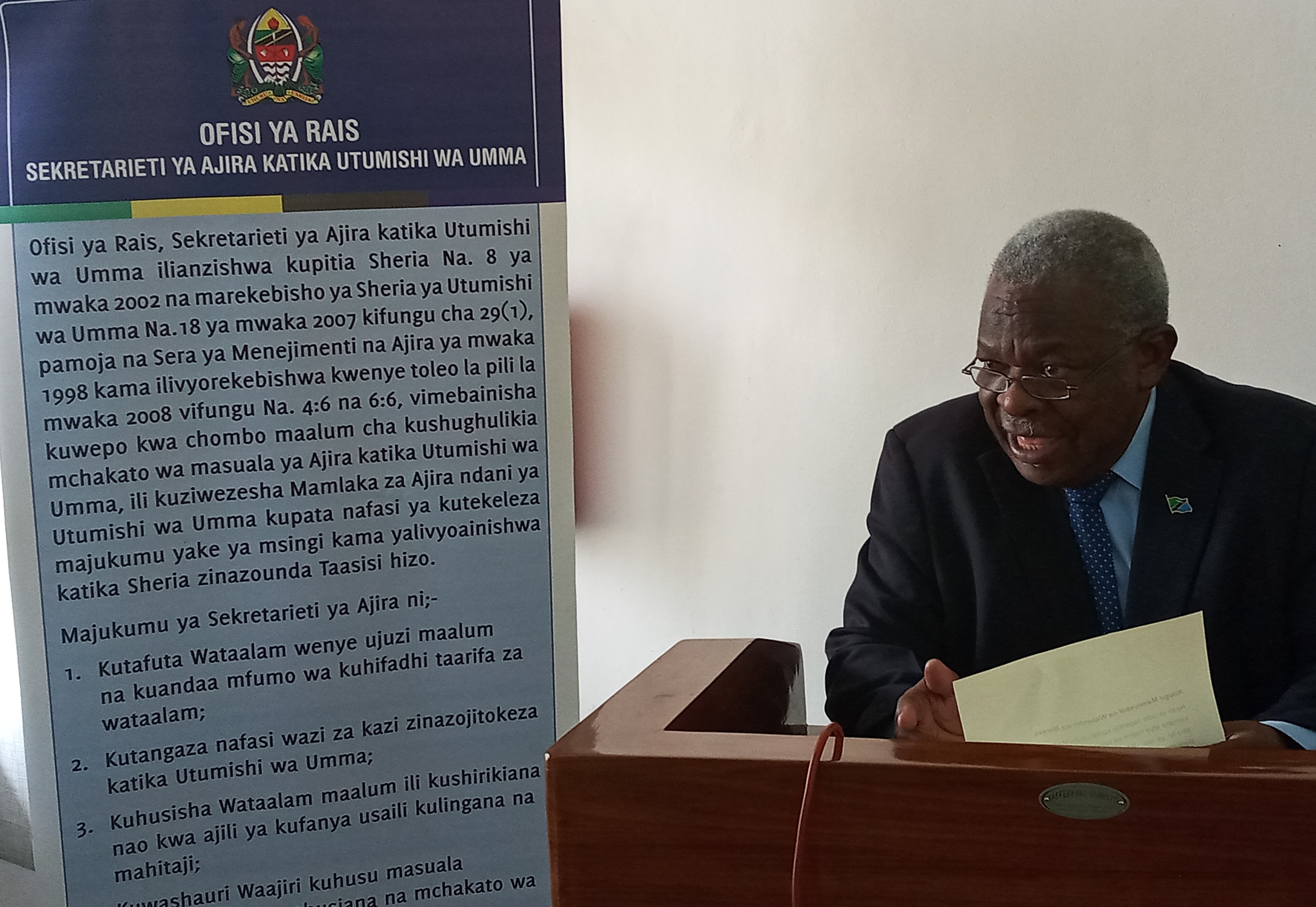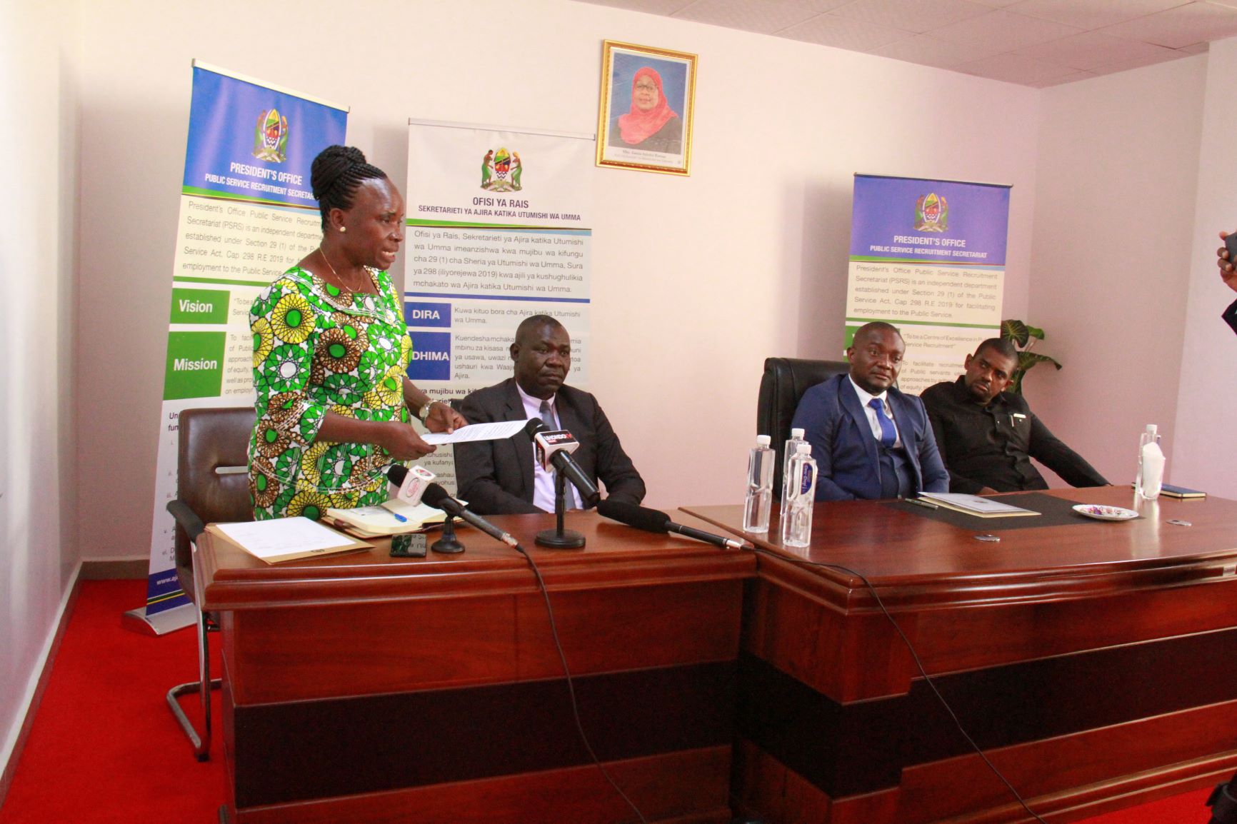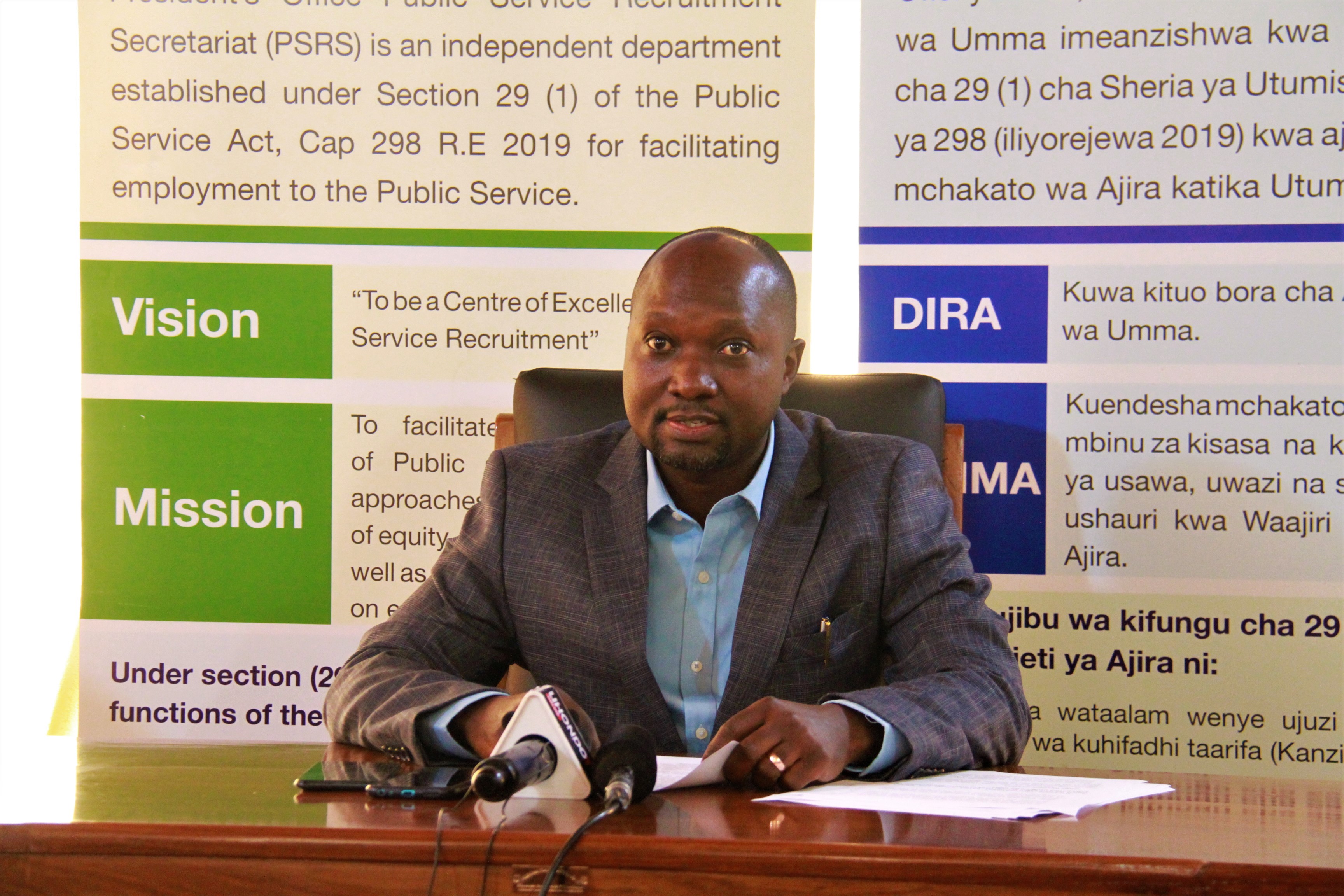 Katibu Msaidizi (Idara ya Ajira), Sekretarieti ya Ajira katika Utumishi wa Umma Bw. Malimi Muya akiongea na Waandishi wa Habari, hawapo pichani kuhusu uendeshaji wa mchakato wa ajira serikalini.