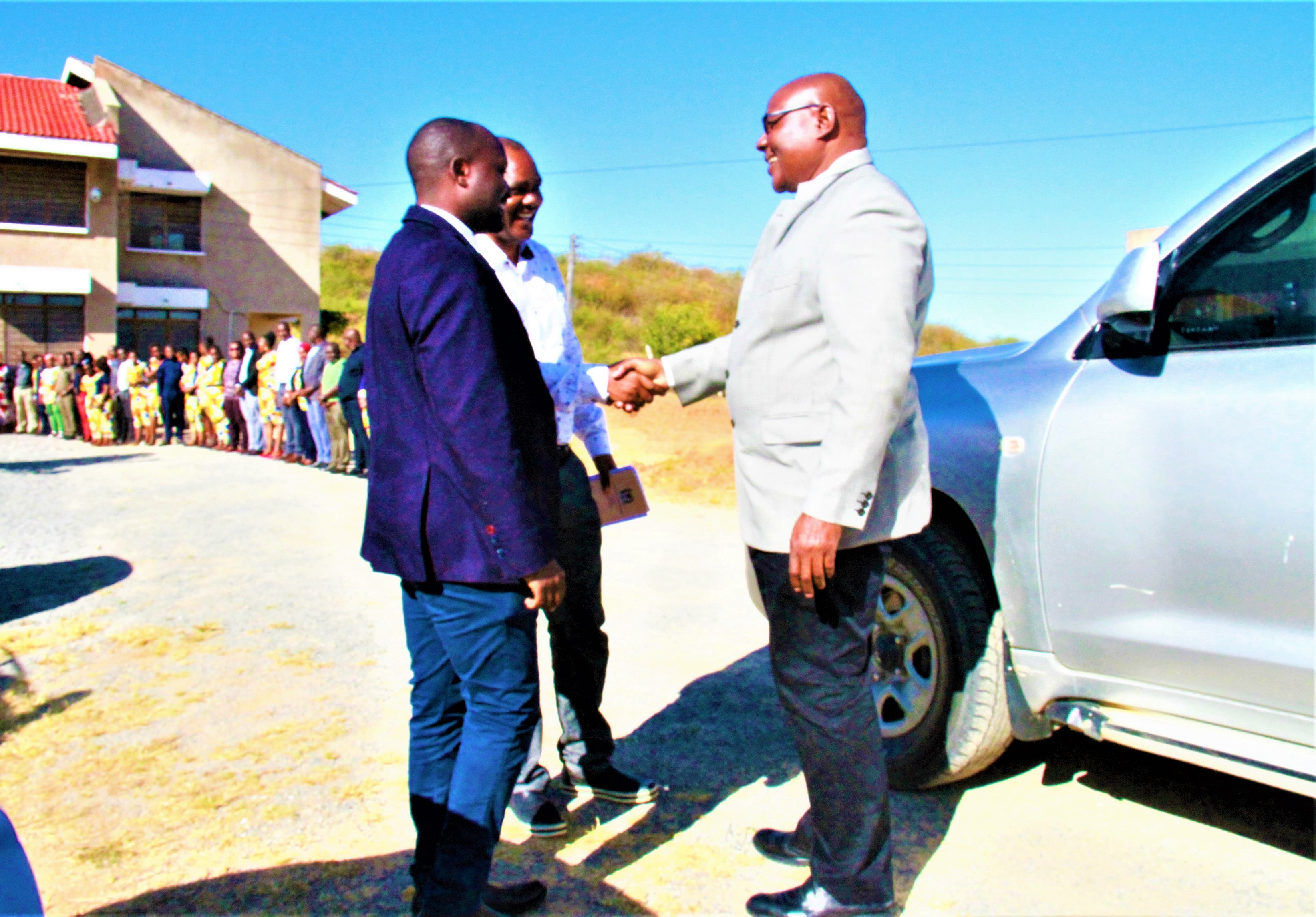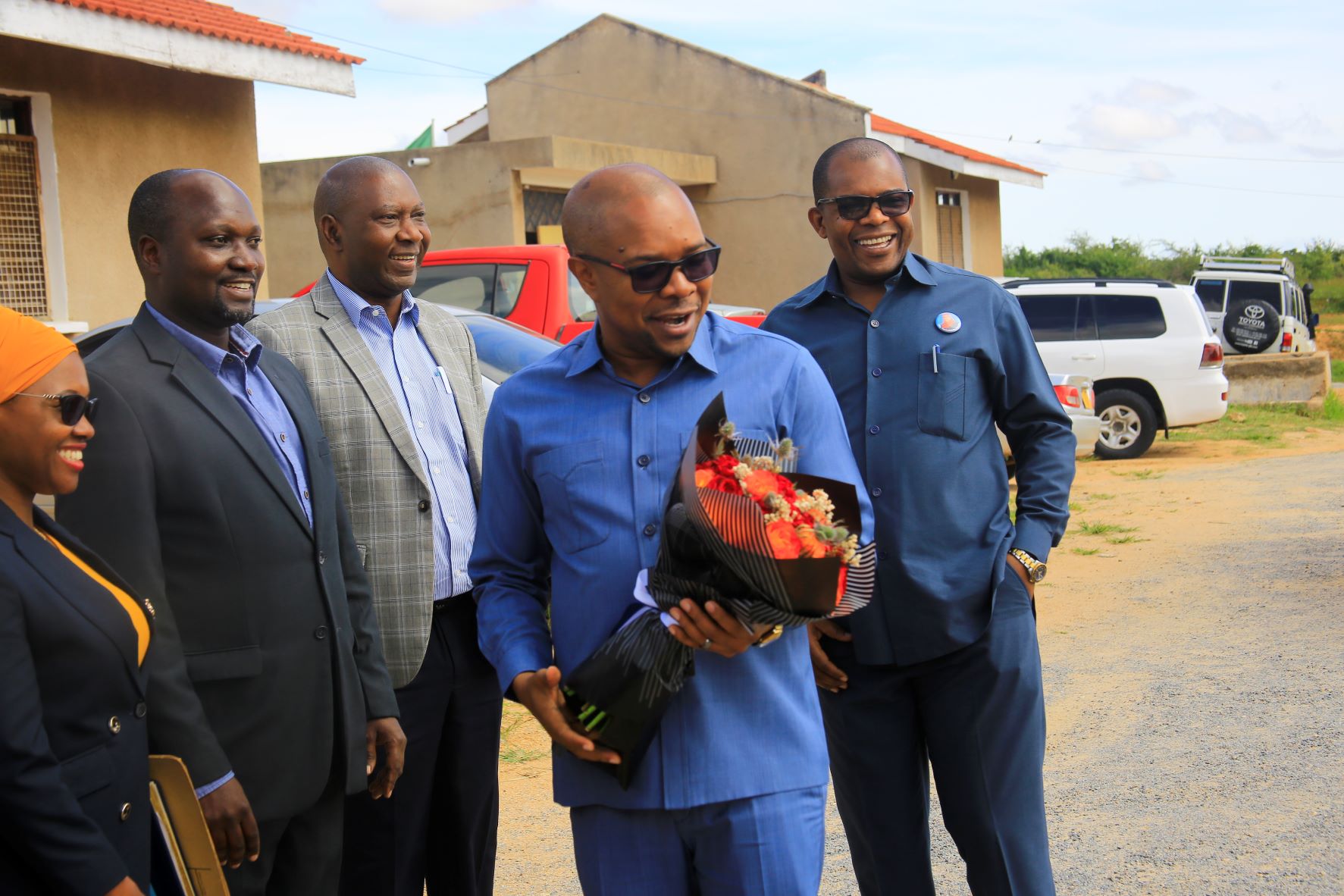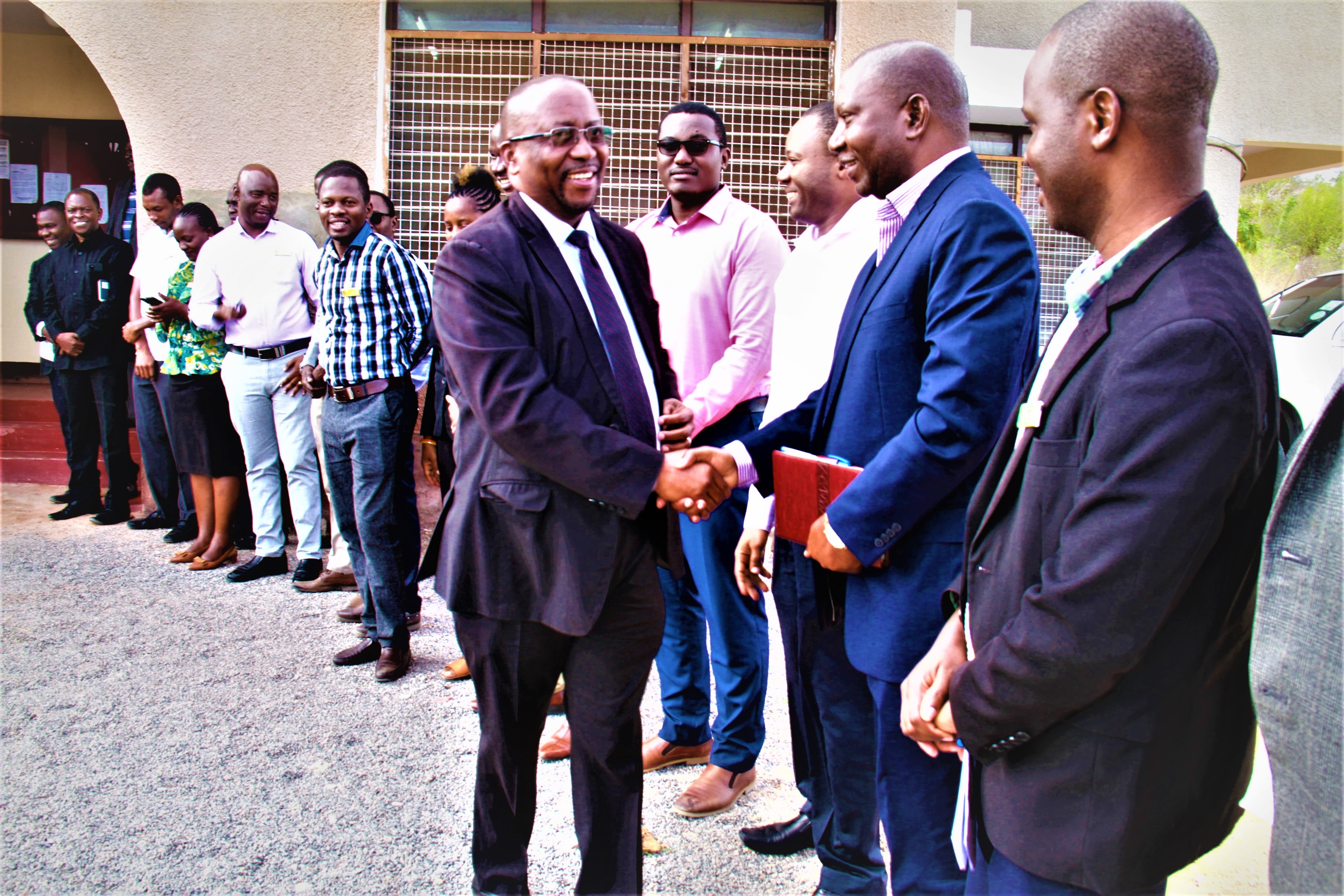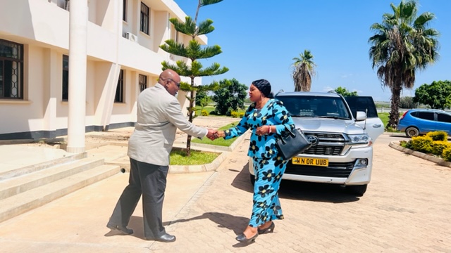 Naibu Katibu Idara ya TEHAMA Mhandisi Samwel Tanguye akimpokea Naibu Waziri wa Nchi, Ofisi ya Rais, Menejimenti ya Utumishi wa Umma na Utawala Bora, Mhe. Deus Clement Sangu alipotembelea Ofisi ya Rais, Sekretarieti ya Ajira katika Utumishi wa Umma eneo la Asha Rose Migiro (UDOM) Jijini Dodoma ili kujitambulisha na kuona namna taasisi hii inavyofanya kazi.
