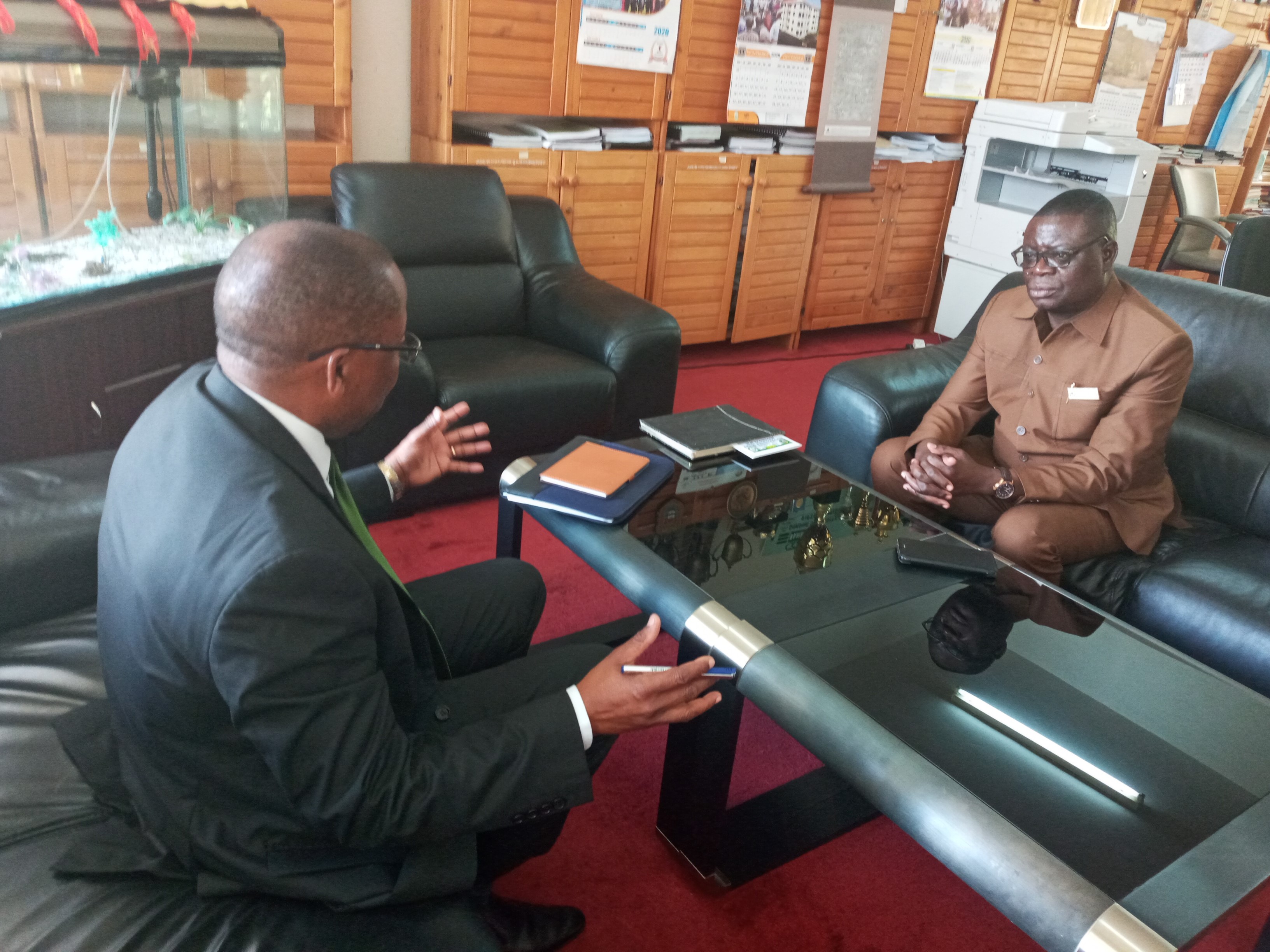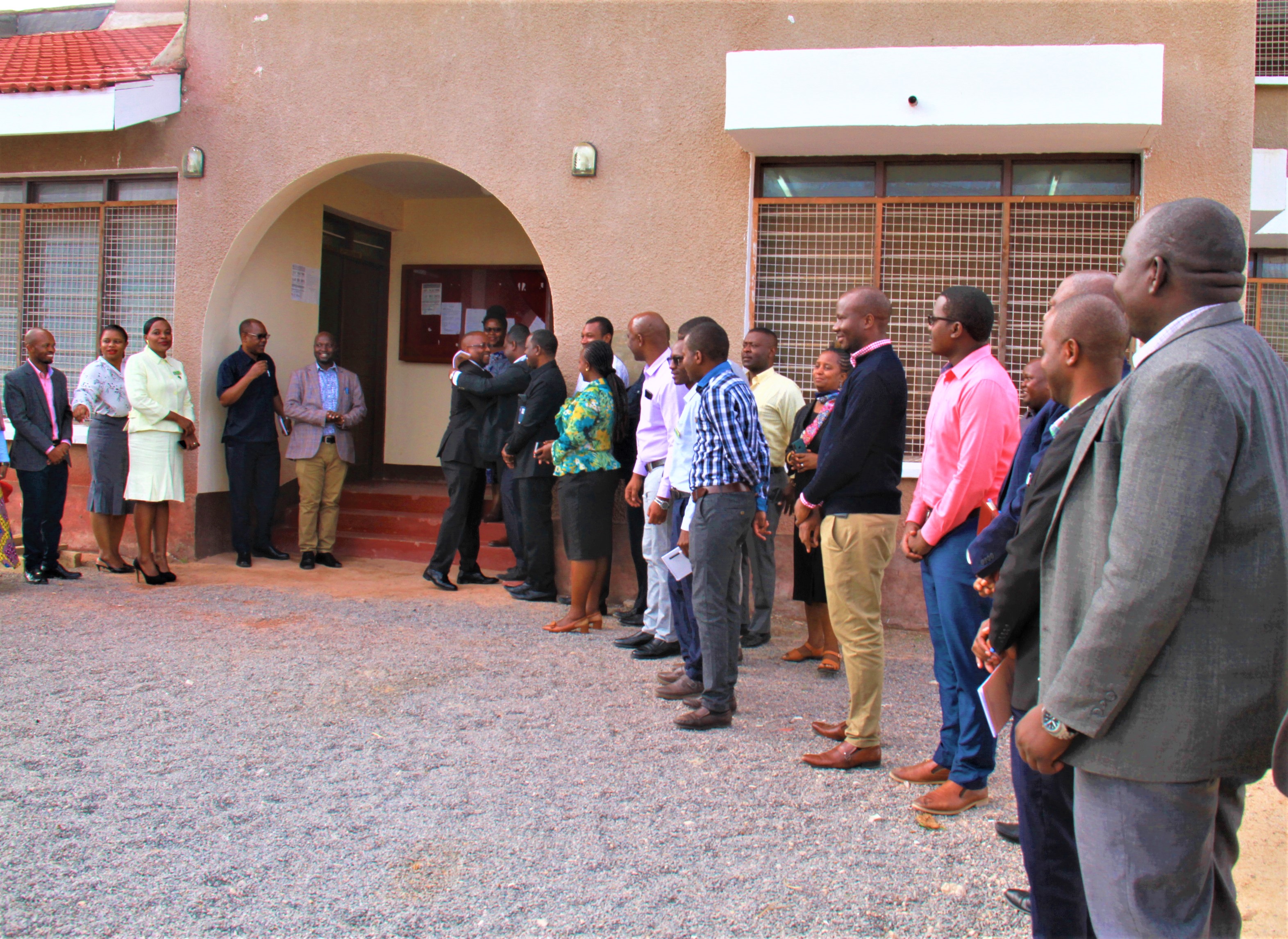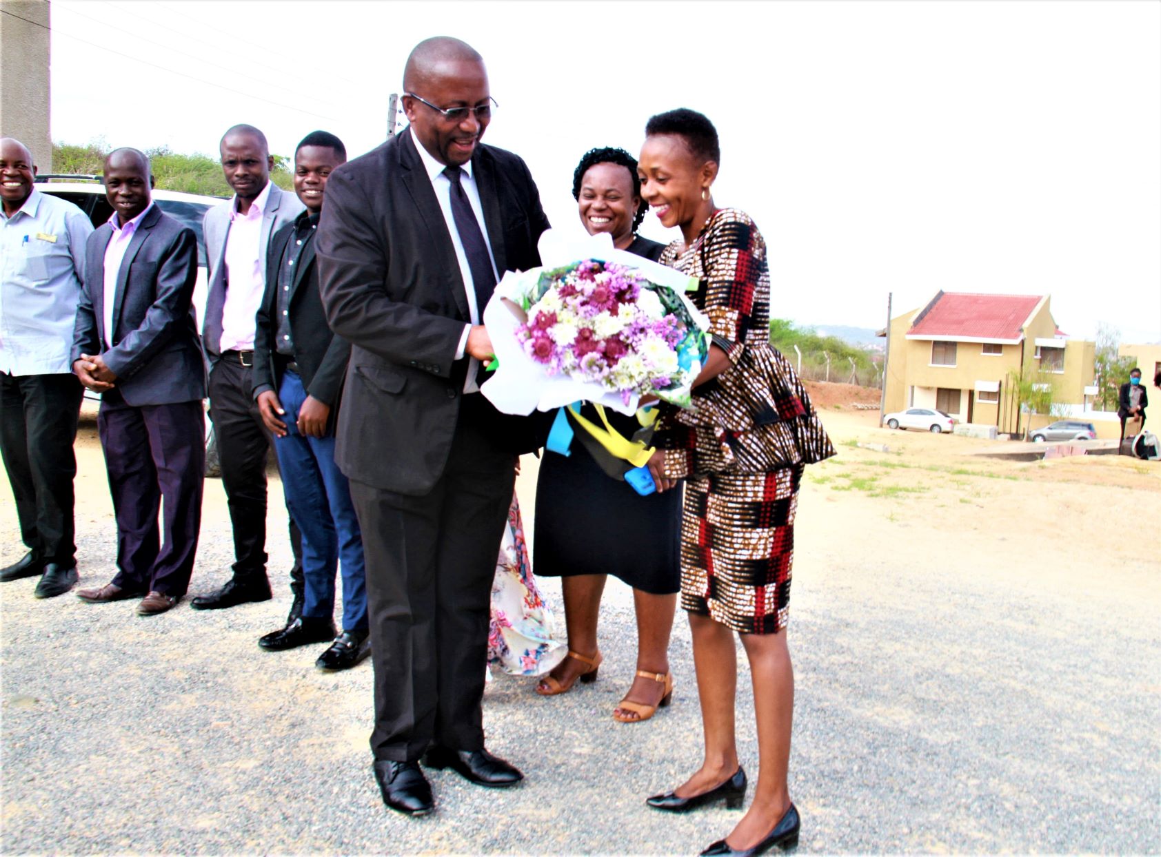 Naibu Katibu Idara ya TEHAMA Mhandisi Samwel Tanguye akimpokea Naibu Waziri wa Nchi, Ofisi ya Rais, Menejimenti ya Utumishi wa Umma na Utawala Bora, Mhe. Deus Clement Sangu alipotembelea Ofisi ya Rais, Sekretarieti ya Ajira katika Utumishi wa Umma eneo la Asha Rose Migiro (UDOM) Jijini Dodoma ili kujitambulisha na kuona namna taasisi hii inavyofanya kazi.