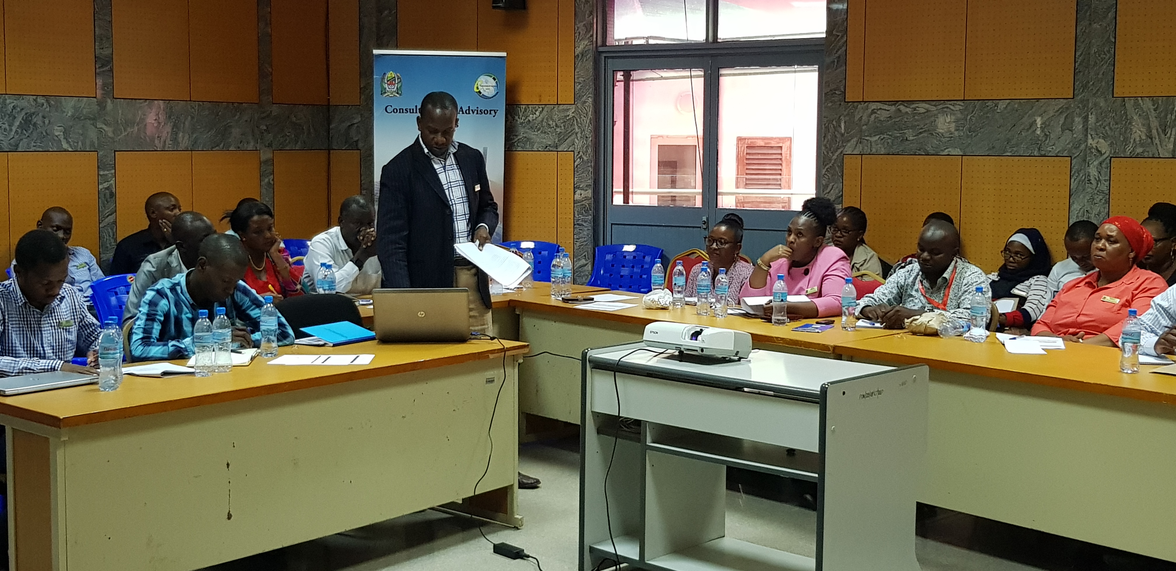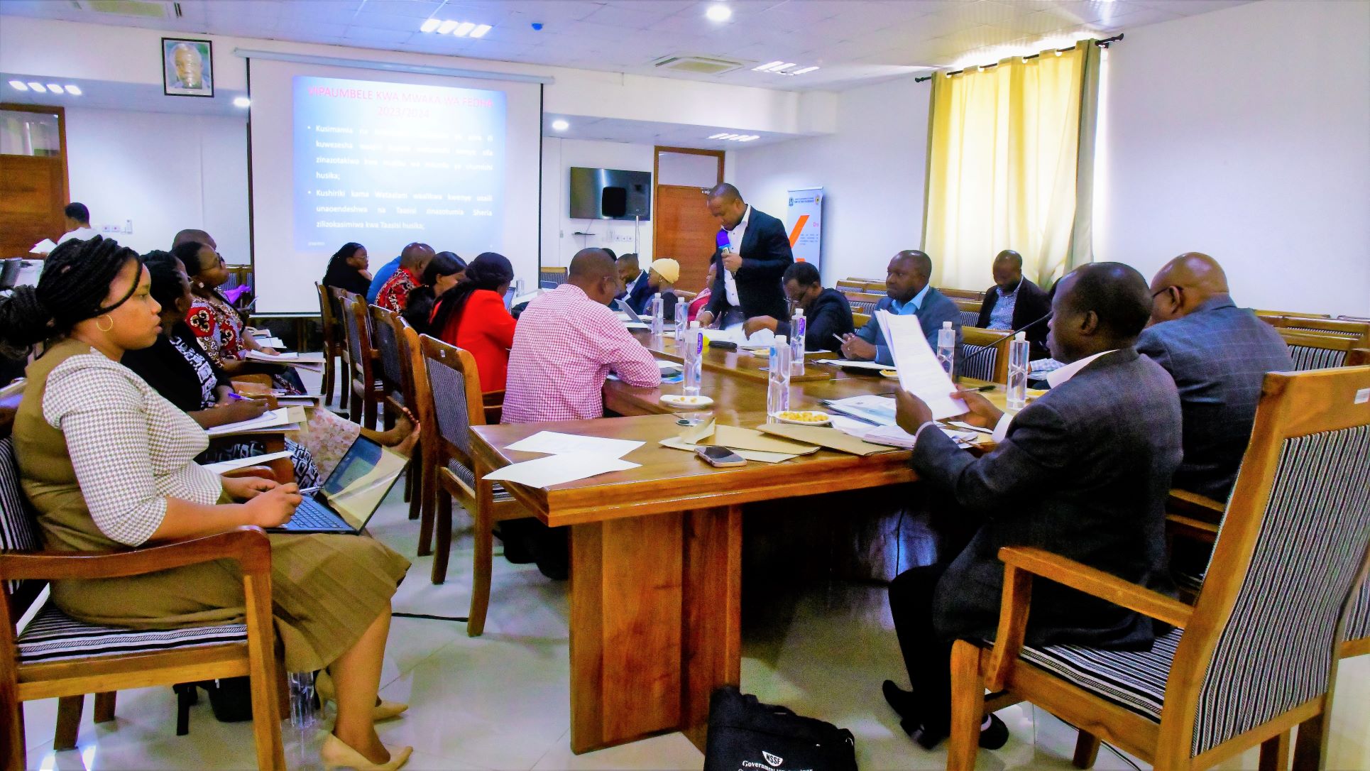 Mkufunzi Mkuu wa masuala ya ufundi na Udereva kutoka Chuo cha Mafunzo ya Ufundi Stadi (VETA) Bw. Kisembe Kapele akifafanua jambo wakati wa kikao kazi kilichohusisha wataalamu kutoka Jeshi la Polisi nchini-Usalama Barabarani Makao Makuu, Sekretarieti ya Ajira katika Utumishi wa Umma pamoja na Wataalam wengine kutoka VETA.