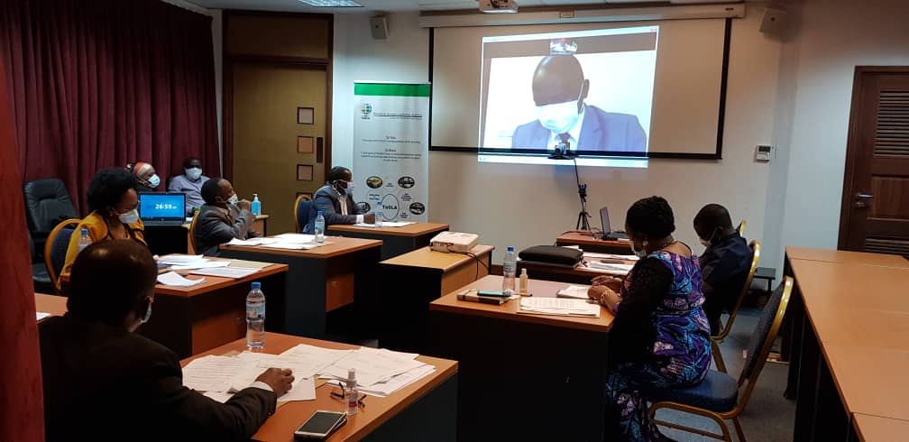 Wajumbe wa jopo la usaili wa UCSAF wakimsikiliza mmoja wa Wasailiwa wa nafasi ya kazi ya Menejimenti hayupo pichani, ambapo usaili huo umefanyika katika ofisi za TAGLA kwa njia ya ''video conference''