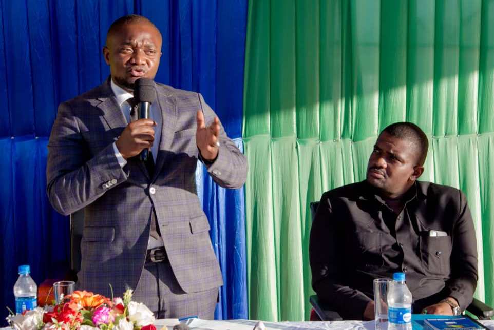 Katibu Mkuu, (OR-MUUB), Dkt. Laurian Ndumbaro akiongea wakati wa makabidhiano ya ofisi za Sekretarieti ya Ajira Mazizini- Zanzibar, kushoto ni Katibu Mkuu, (OR-UUUB), Bw. Yakout Hassan Yakout na Naibu Katibu (OR-UUUB).