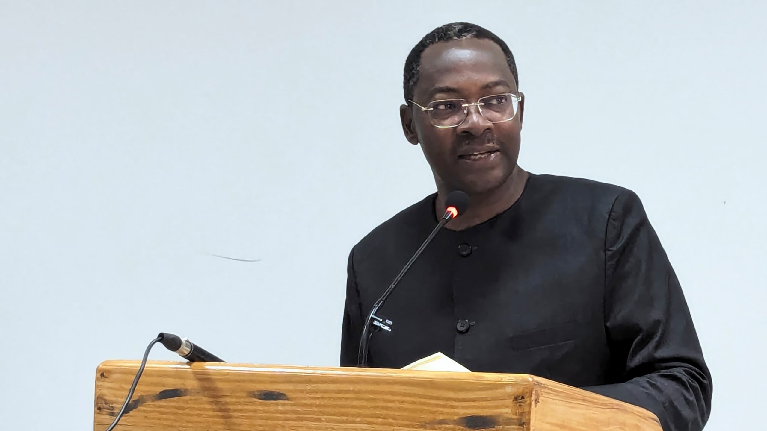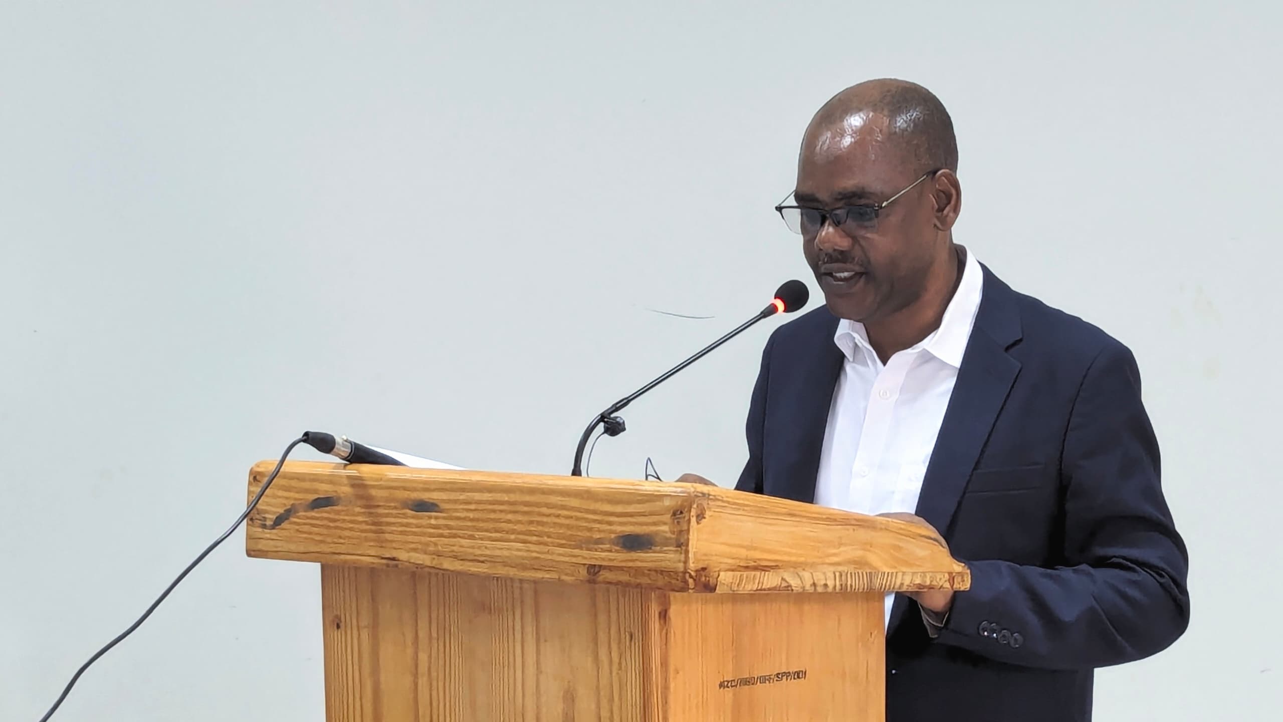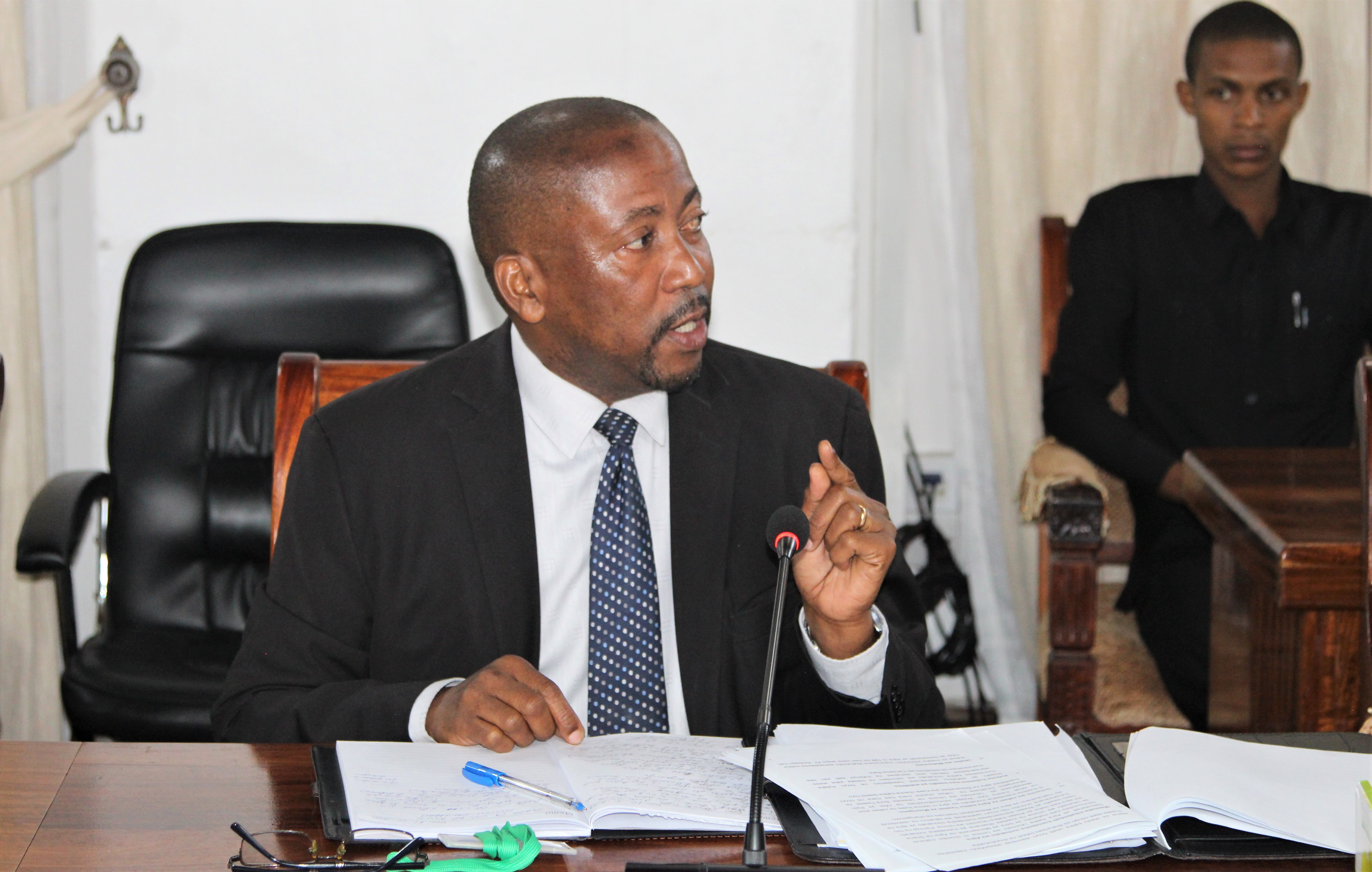 Katibu wa Sekretarieti ya Ajira katika Utumishi wa Umma, Bw. Xavier Daudi akiwasilisha taarifa yake wakati wa makabidhiano ya ofisi za Sekretarieti ya Ajira, Mazizini- Zanzibar
