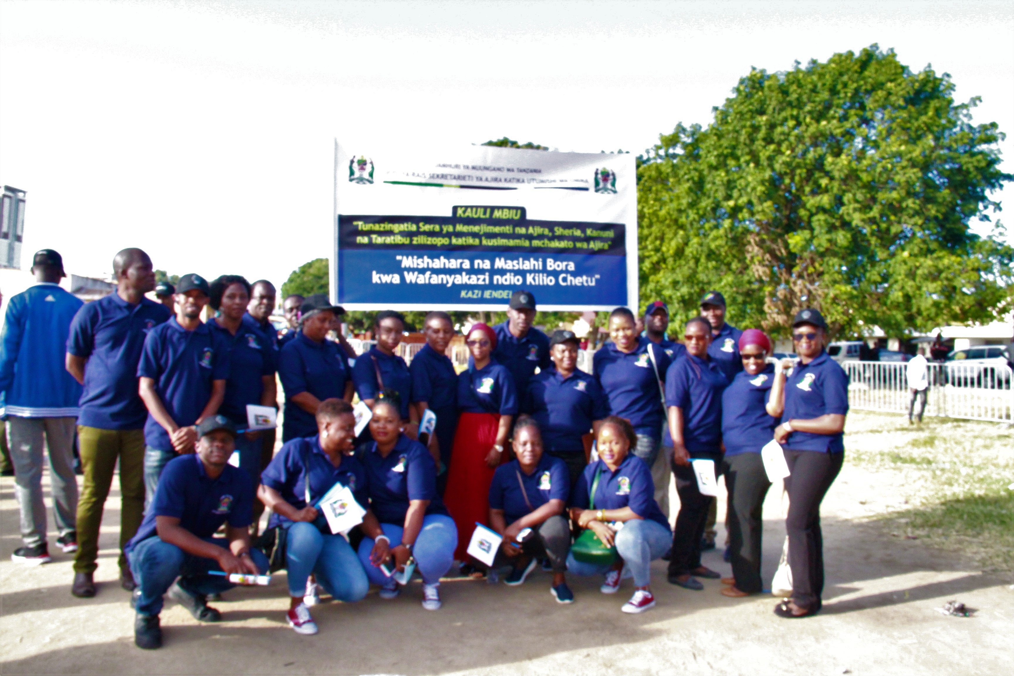 Watumishi wa Ofisi ya Rais Sekretarieti ya Ajira katika Utumishi wa Umma wakiwa kwenye Maadhimisho ya Sikukuu ya Wafanyakazi Duniani jijini Dodoma