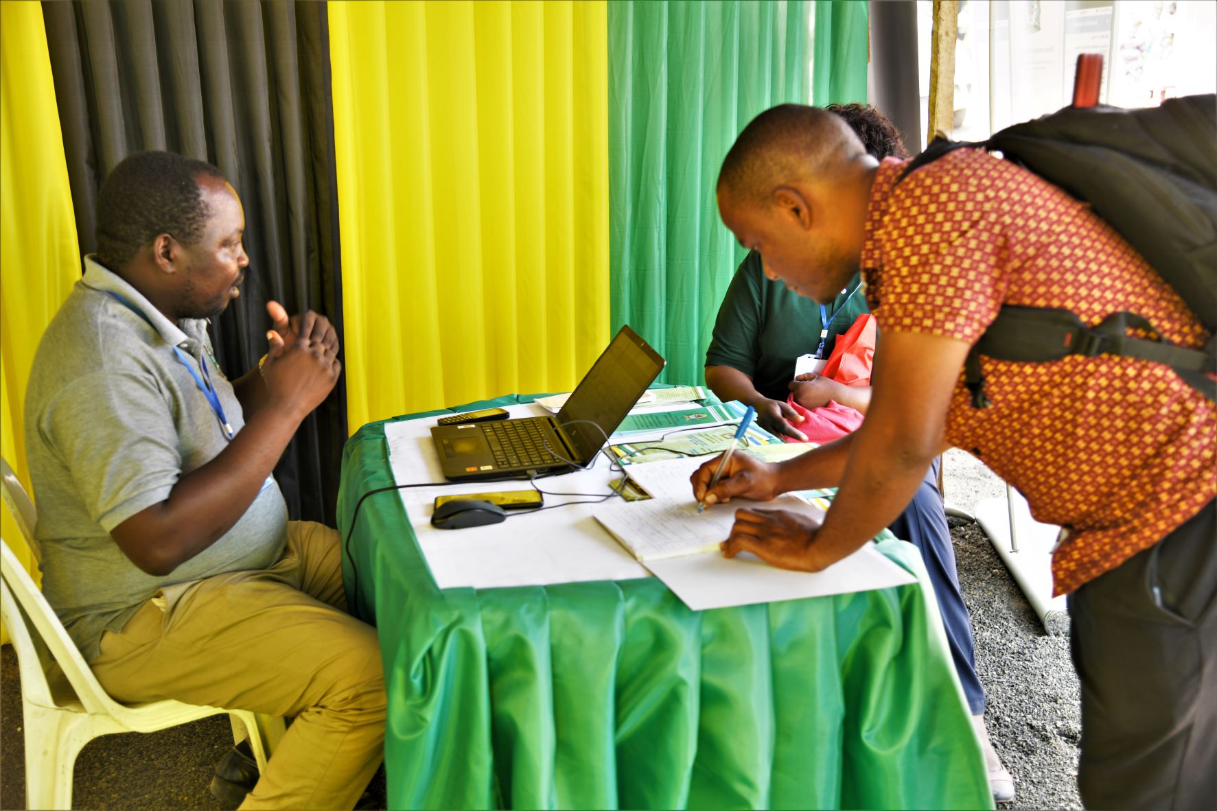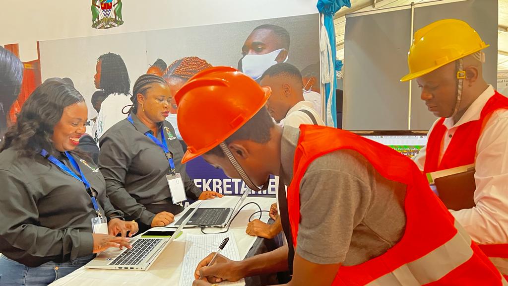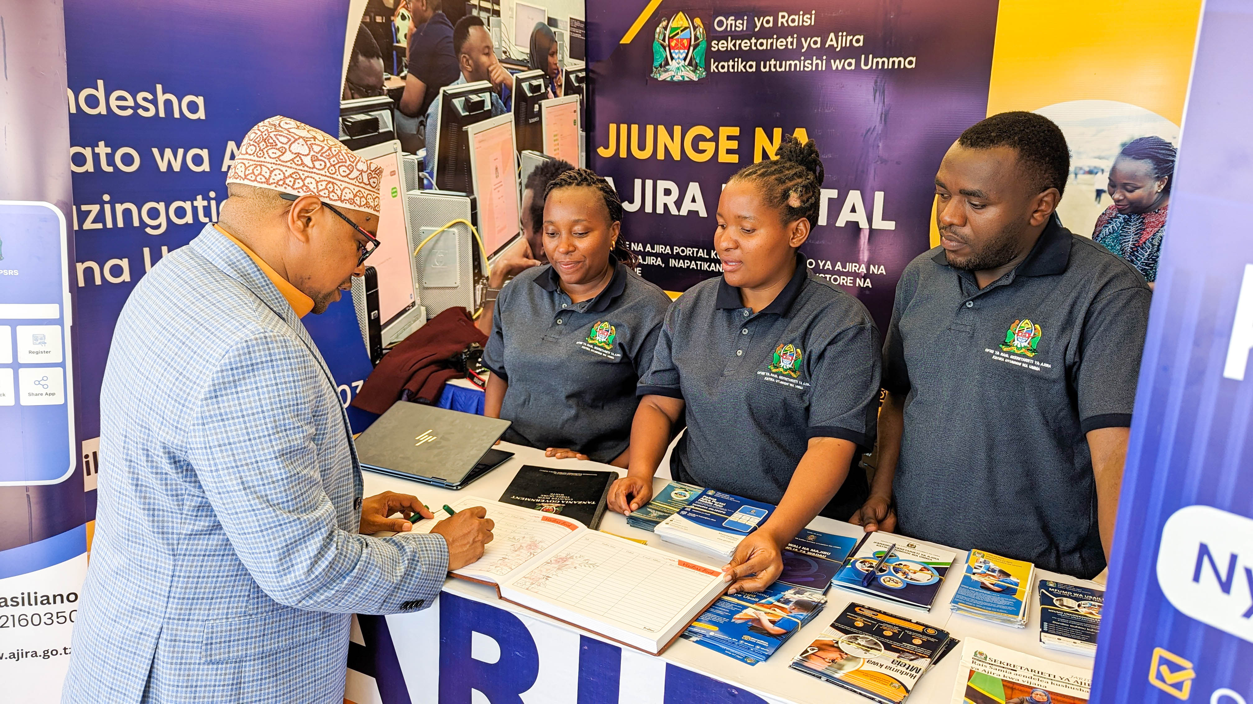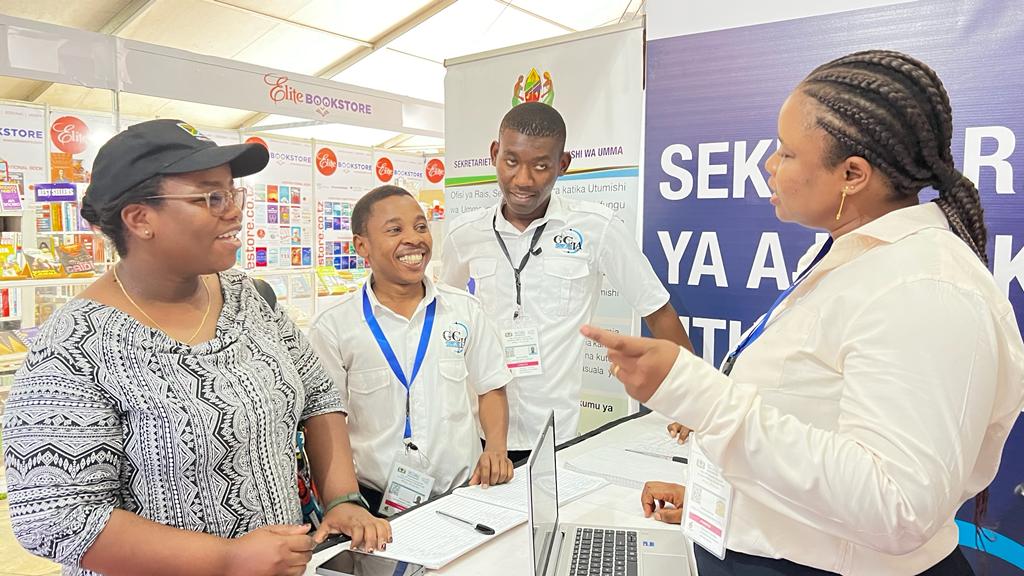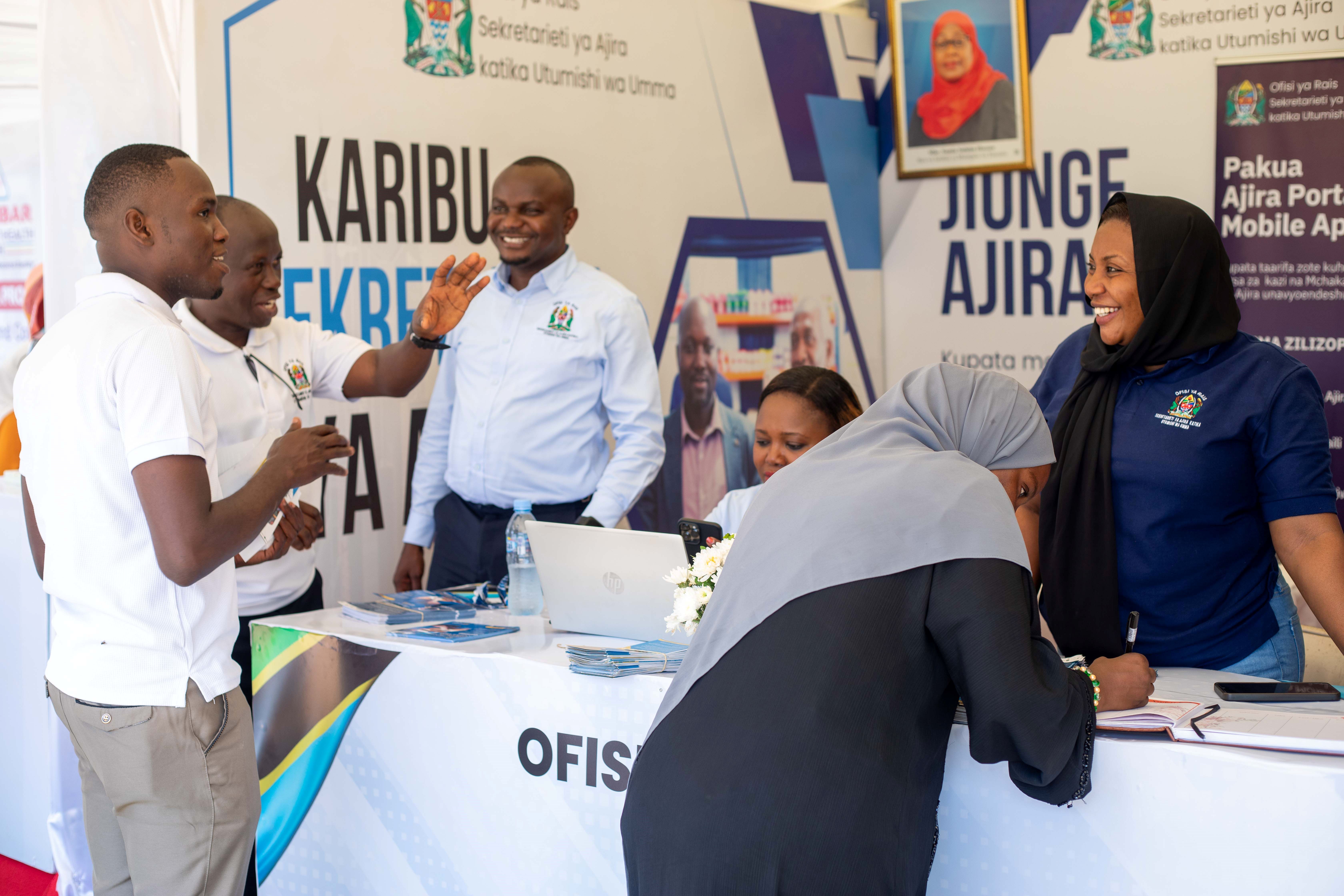 Karibu katika banda la Ofisi ya Rais,Sekretarieti ya Ajira katika Utumishi wa Umma kwenye Viwanja vya shule ya Sekondari Popatlal jijini Tanga kwenye maadhimisho ya wiki ya Kitaifa ya Elimu,Ujuzi na Ubunifu ambapo elimu kuhusu uendeshaji wa mchakato wa ajira pamoja na ufanyaji wa usaili kidigitali inaendelea kutolewa.