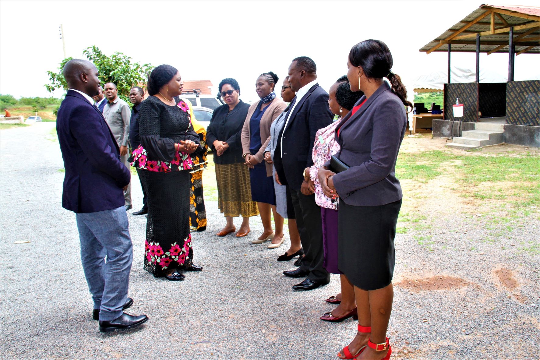 Katibu Ofisi ya Rais, Sekretarieti ya Ajira Bw. Xavier Daudi (aliyesimama) akifafanua jambo kwa ugeni kutoka Tume ya Utumishi wa Umma nchini Zimbabwe walipotembelea Ofisi za Sekretarieti ya Ajira.