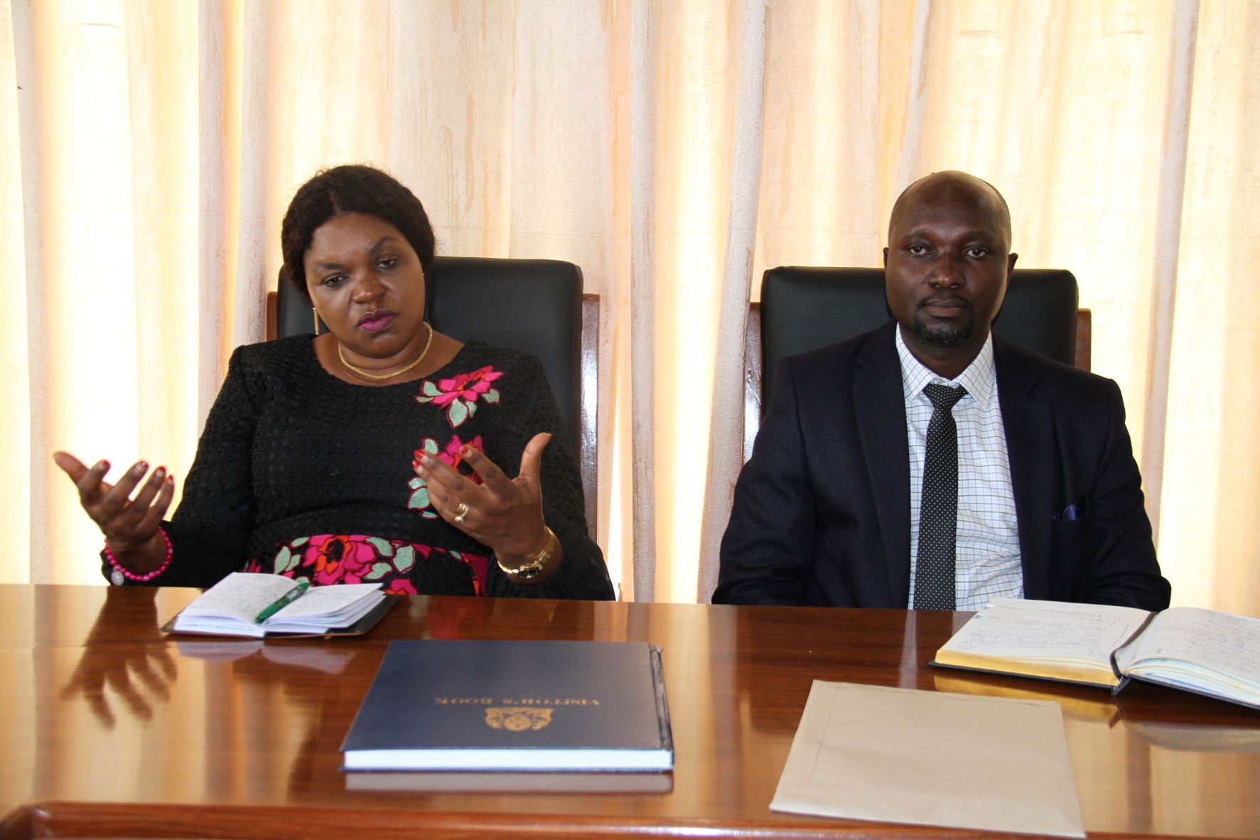 Mwenyekiti wa Sekretarieti ya Ajira Bi Rose Lugembe akiteta jambo na Katibu wa Sekretarieti ya Ajira katika Utumishi wa Umma Bw. Xavier Daudi wakati wa kikao kazi.