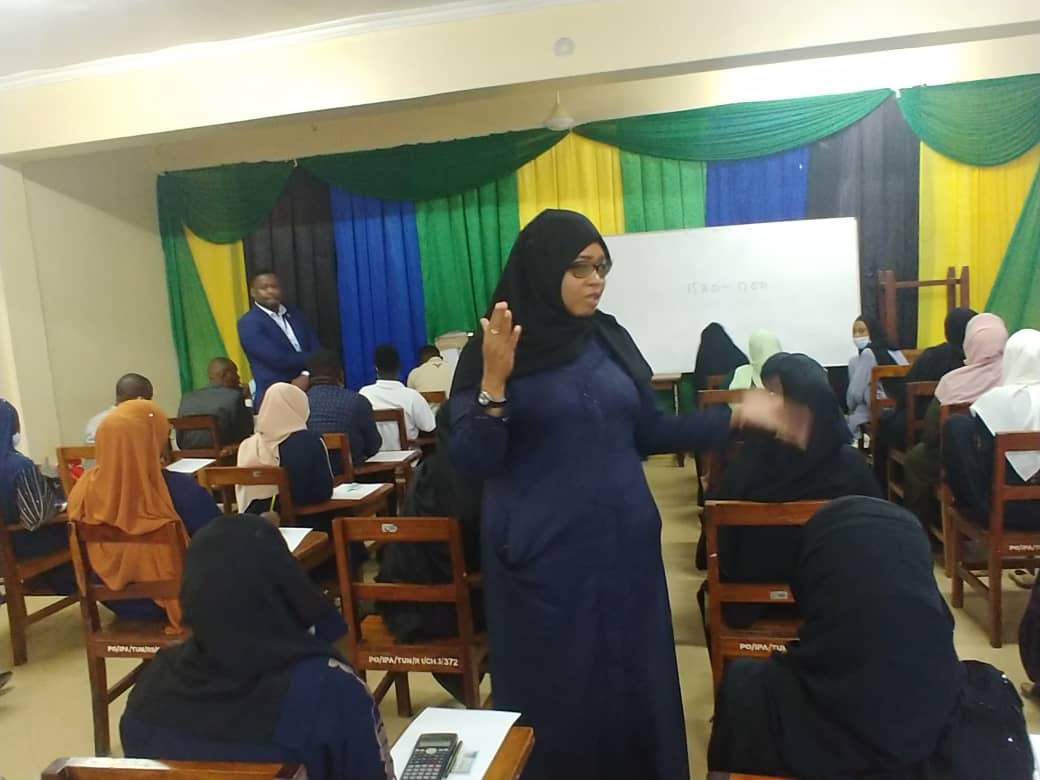 Mtaalam wa masuala ya Saikolojia, Zainab Rashid kutoka Chuo cha Ustawi wa Jamii akifundisha washiriki wa mafunzo kutoka Sekretarieti ya Ajira katika Utumishi wa Umma namna ya kuweza kumpima mtu na kuweza kufahamu tabia, uwezo na hulka ya mhusika.