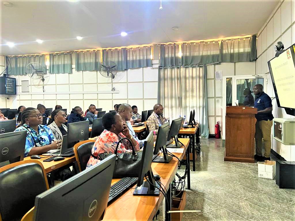 Katibu Msaidizi upande wa Mifumo ya TEHAMA Bw.Musa Mselem akitoa mafunzo ya Mfumo wa Ajiraportal katika Chuo cha Mtakatifu John kilichopo jijini Dodoma