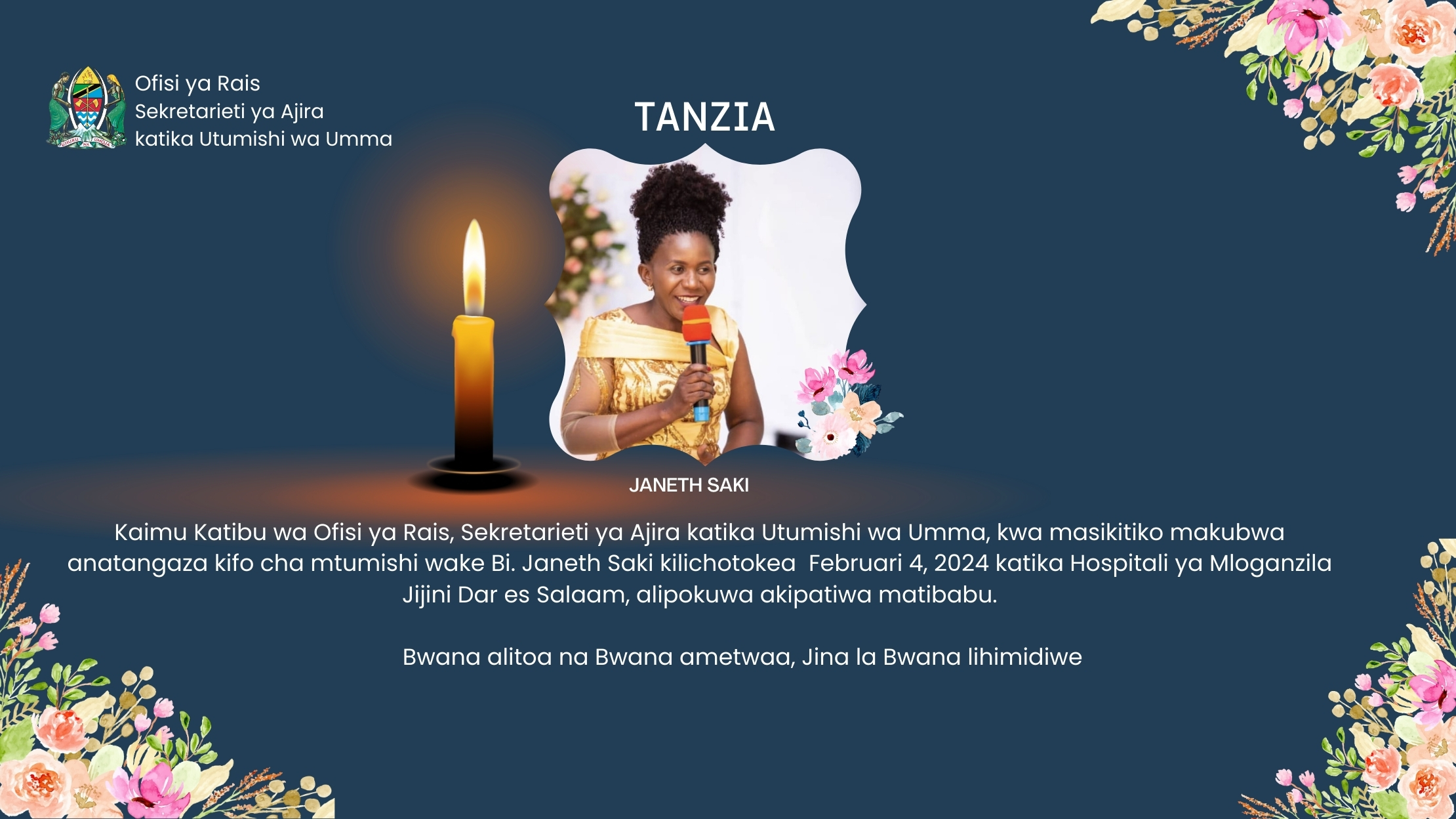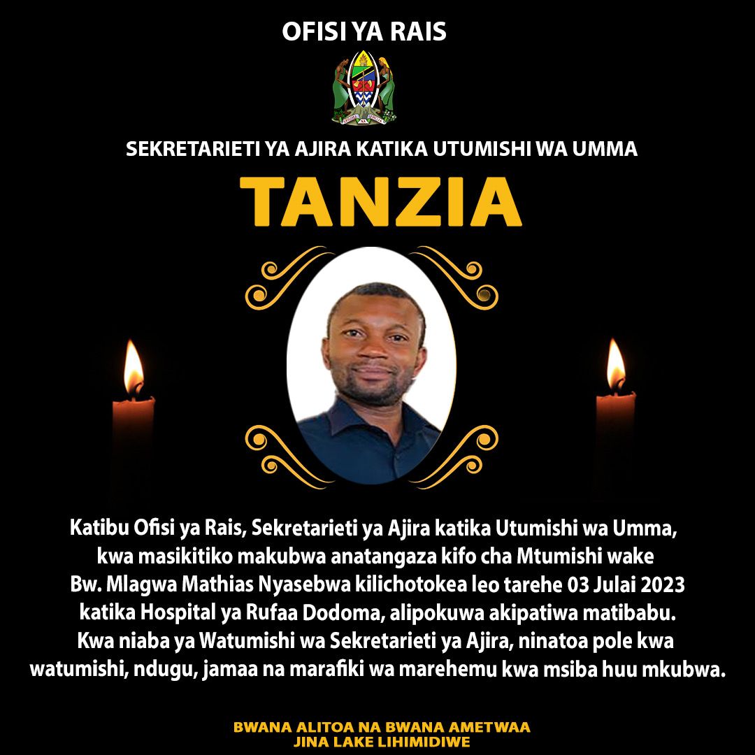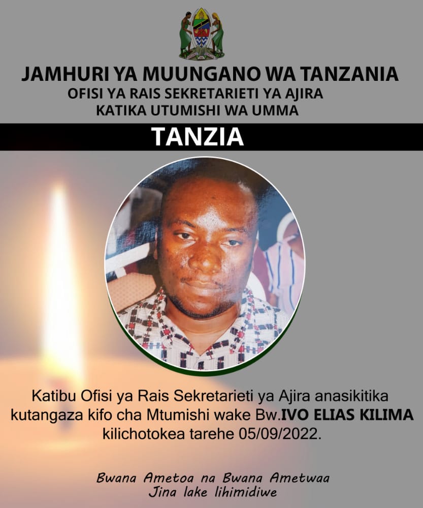 Katibu wa Ofisi ya Rais,Sekretarieti ya Ajira katika Utumishi wa Umma anatoa pole kwa familia, watumishi, ndugu, jamaa na marafiki kwa kuondokewa na mtumishi Ibrahim Amiri aliyefariki kwa ajali ya gari.