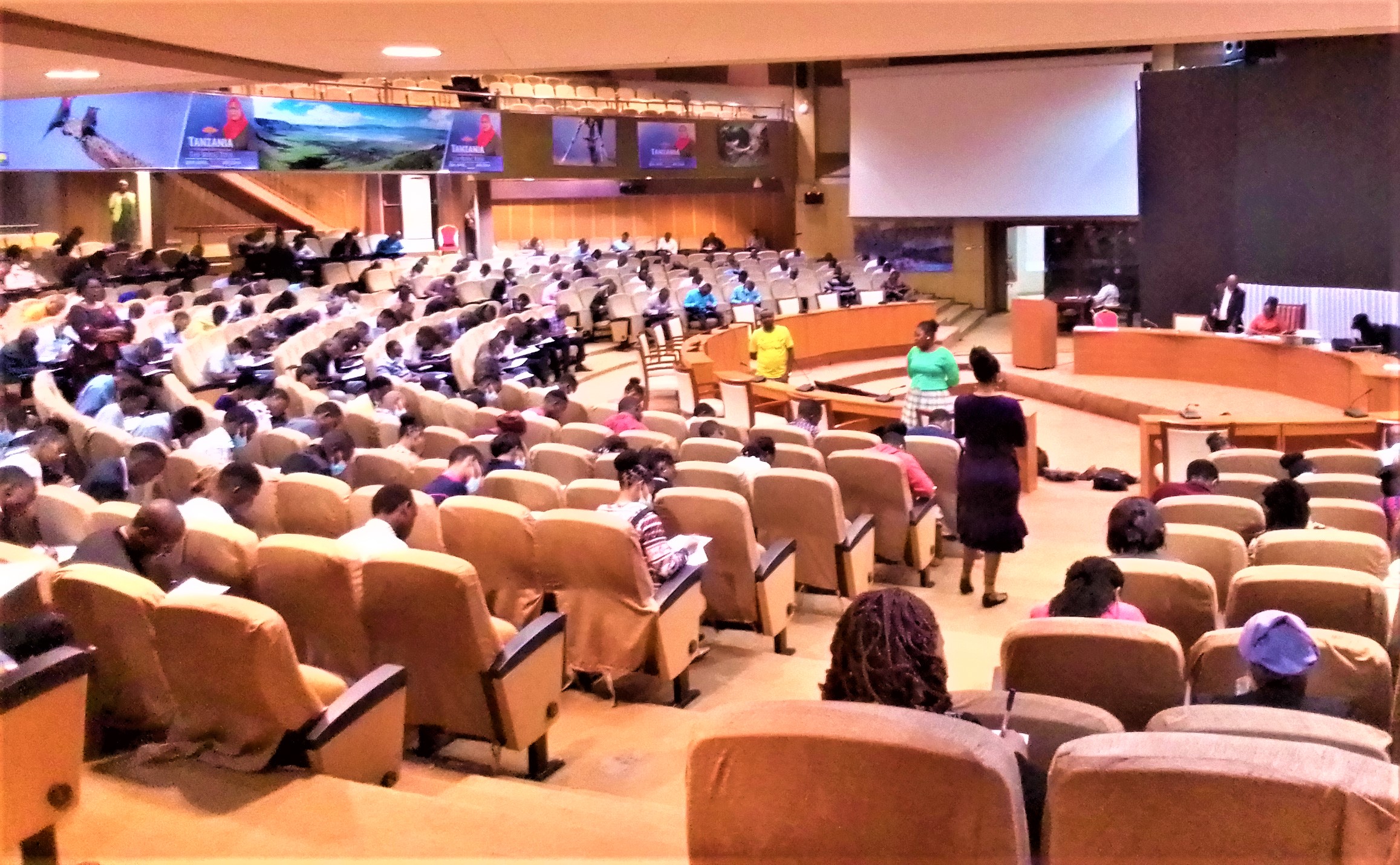 Baadhi ya Wasailiwa wa nafasi za kazi kwa ajili ya Ofisi ya Taifa ya Ukaguzi (NAOT) wakiendelea na Usaili (DUCE).