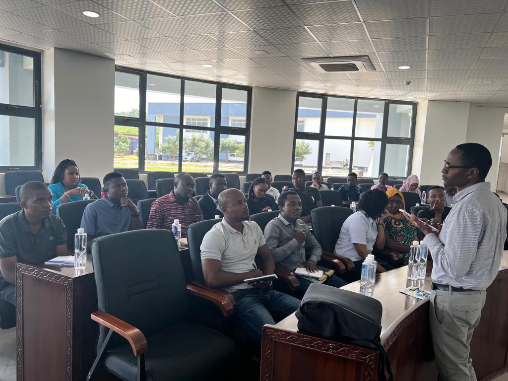 Mhandisi Samweli Tanguye ambaye ni Naibu Katibu (TEHAMA) ,akitoa mada ya mabadiliko ya Mfumo wa uombaji kazi kwa wajumbe wa Tume ya Utumishi wa Umma chini Zimbabwe walipofanya ziara ya mafunzo nchini.