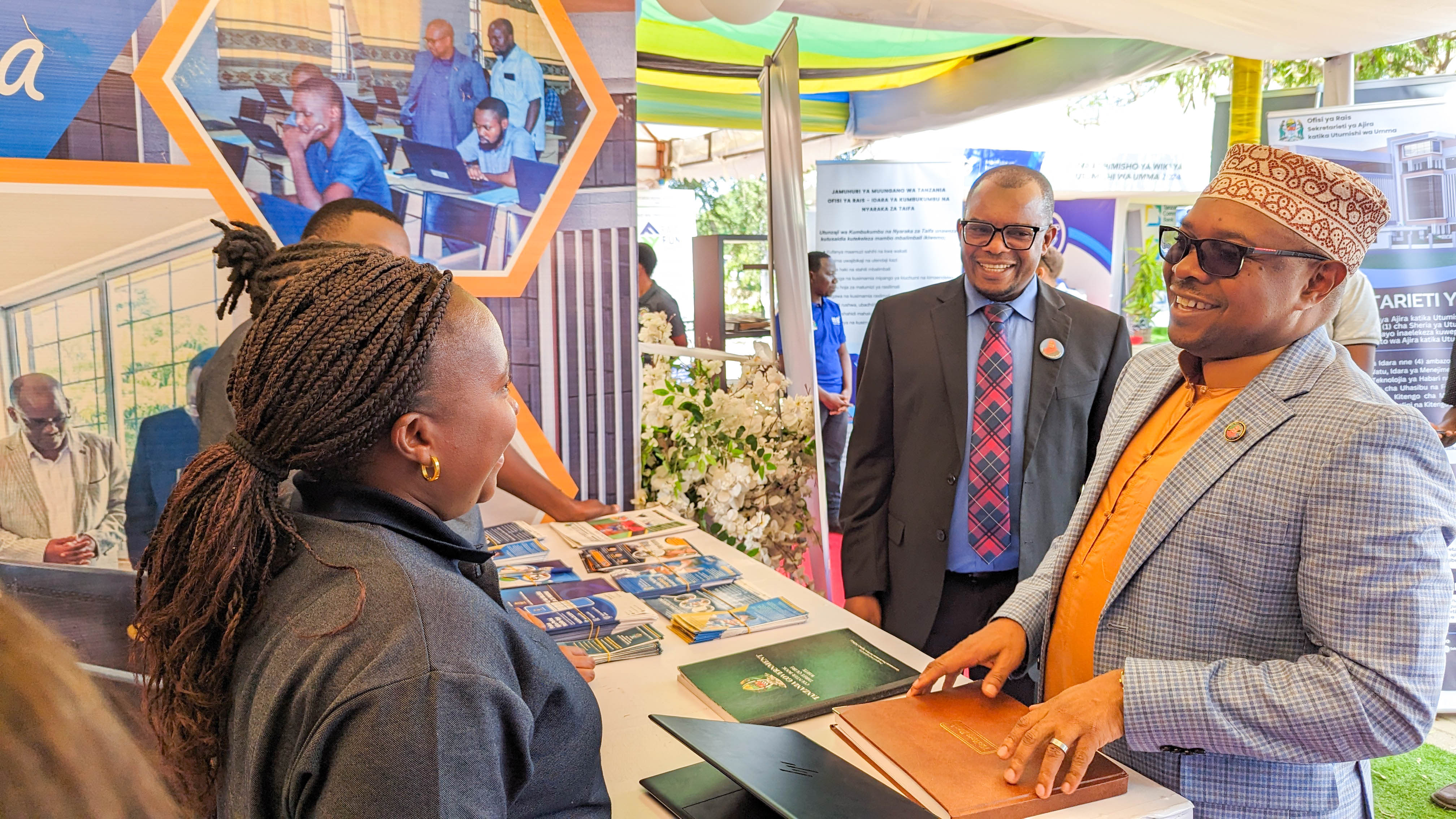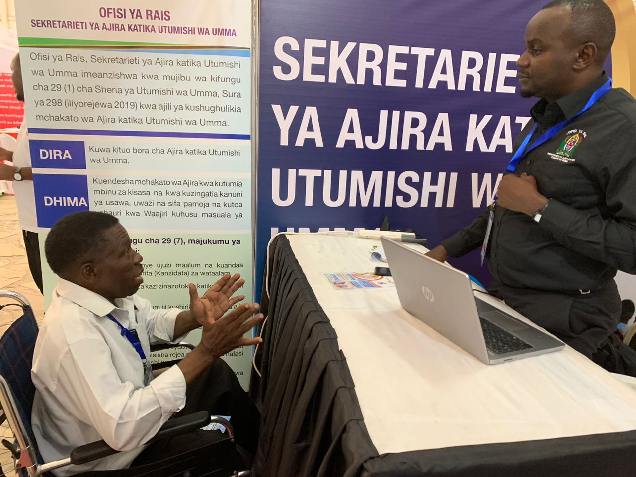 Mkuu wa Idara ya TEHAMA Sekretarieti ya Ajira katika Utumishi wa Umma Mhandisi Samwel Tanguye ametembelea banda la ofisi hiyo katika kilele cha Wiki ya Utumishi wa Umma