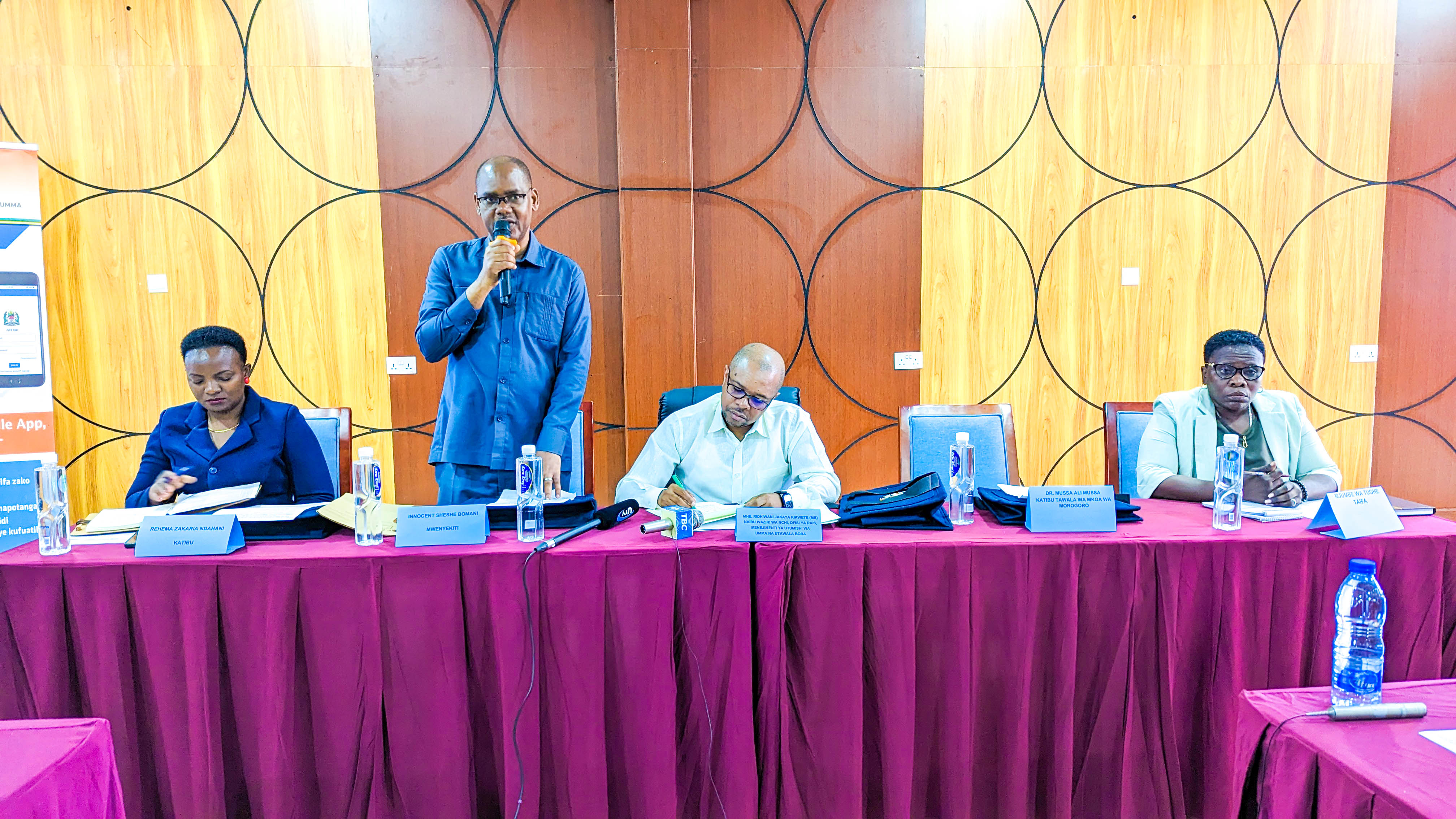 Naibu Katibu, Idara ya Udhibiti wa Ubora katika Sekretarieti ya Ajira, Bw. Humphrey Mniachi akiongea na baadhi ya wadau kutoka Jeshi la Polisi nchini- Usalama Barabarani Makao Makuu na Chuo cha Mafunzo Ufundi Stadi (VETA) hawapo pichani kulia kwake ni Afisa Rasilimaliwatu Bw. Ally Mnyimwa.
