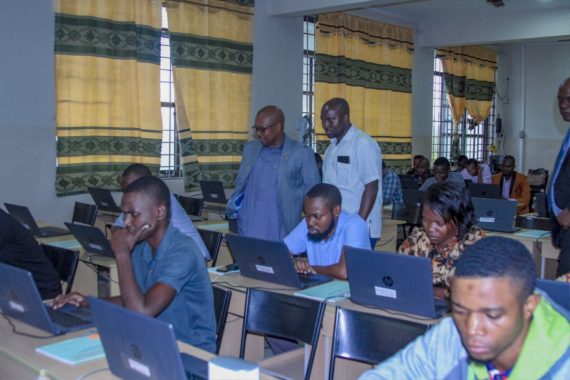 Mmoja wa Wasimamizi wa Usaili akiangalia Wasailiwa wakiendelea na Usaili (DUCE) kwa ajili ya Ofisi ya Taifa ya Ukaguzi (NAOT).
