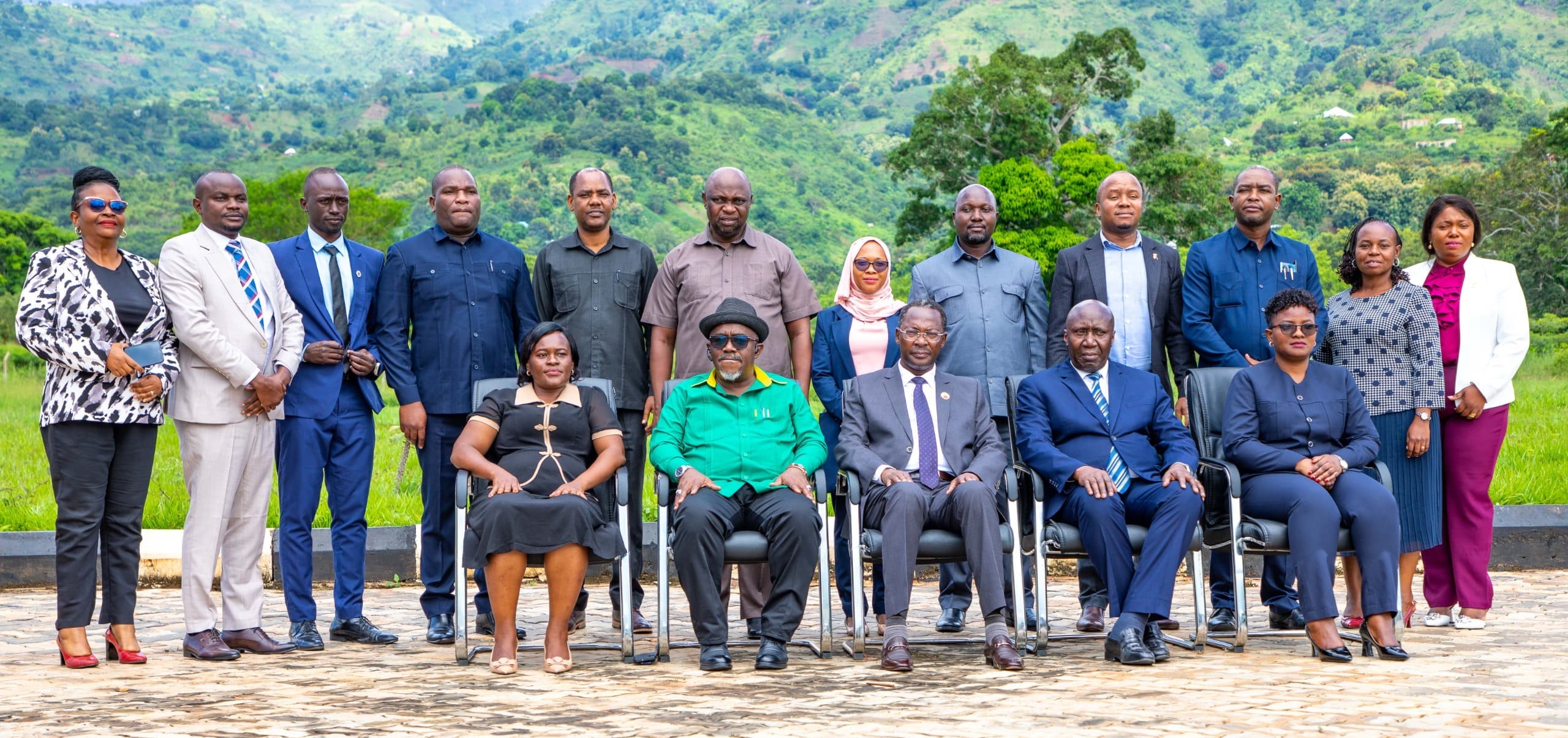 Naibu Waziri wa Nchi, Ofisi ya Rais, Menejimenti ya Utumishi wa Umma na Utawala Bora, Mhe. Deus Clement Sangu akiwa kwenye picha ya pamoja na Menejimenti ya Sekretarieti ya Ajira