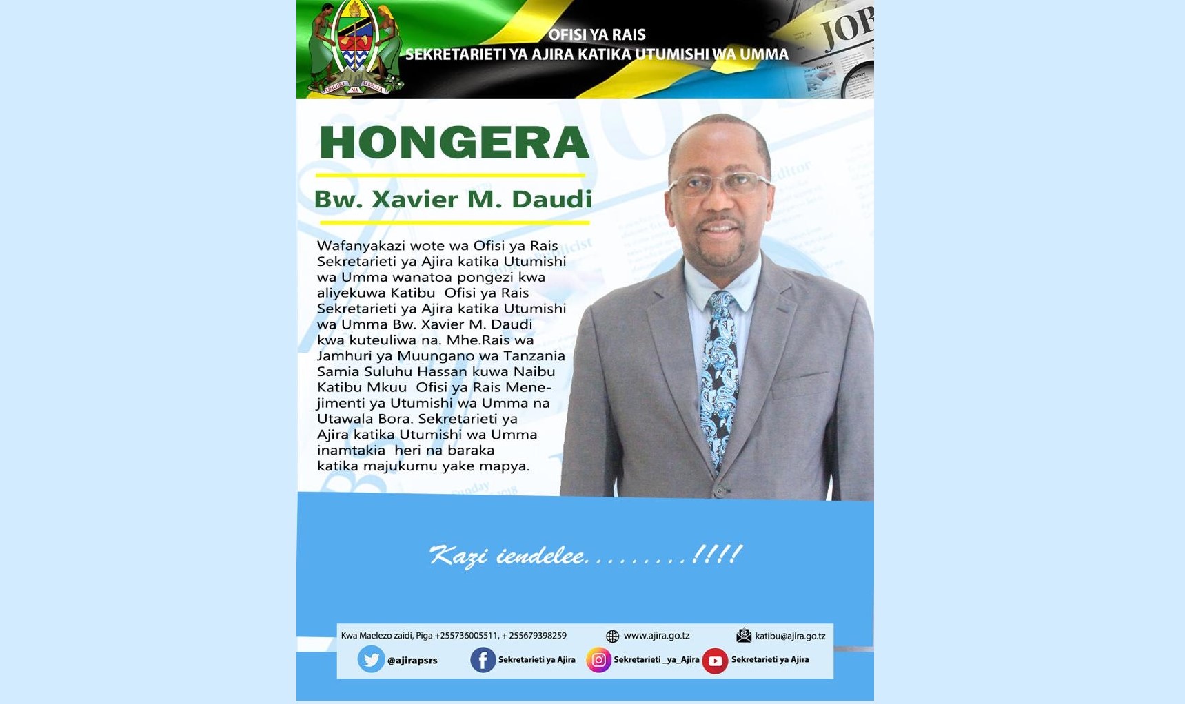 Menejimenti na Watumishi wa Ofisi ya Rais, Sekretarieti ya Ajira katika Utumishi wa Umma wanampongeza Waziri Mkuu wa Jamhuri ya Muungano wa Tanzania, Mhe. Kassim Majaliwa kwa kuaminiwa na kuteuliwa kwake kwa mara nyingine kuwatumikia Watanzania,