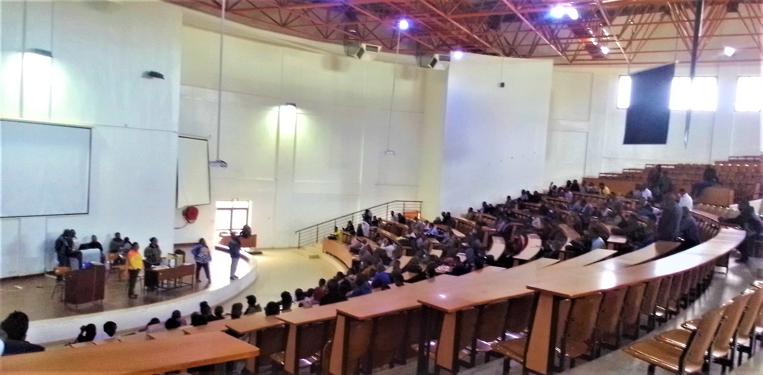 Naibu Katibu, Idara ya Ajira katika Sekretarieti ya Ajira Bw. Lucas Mrumapili akitoa maelekezo ya jumla kwa Wasailiwa wakati wa usaili wa mchujo uliofanyika Chuo Kikuu cha Dar es Salaam.