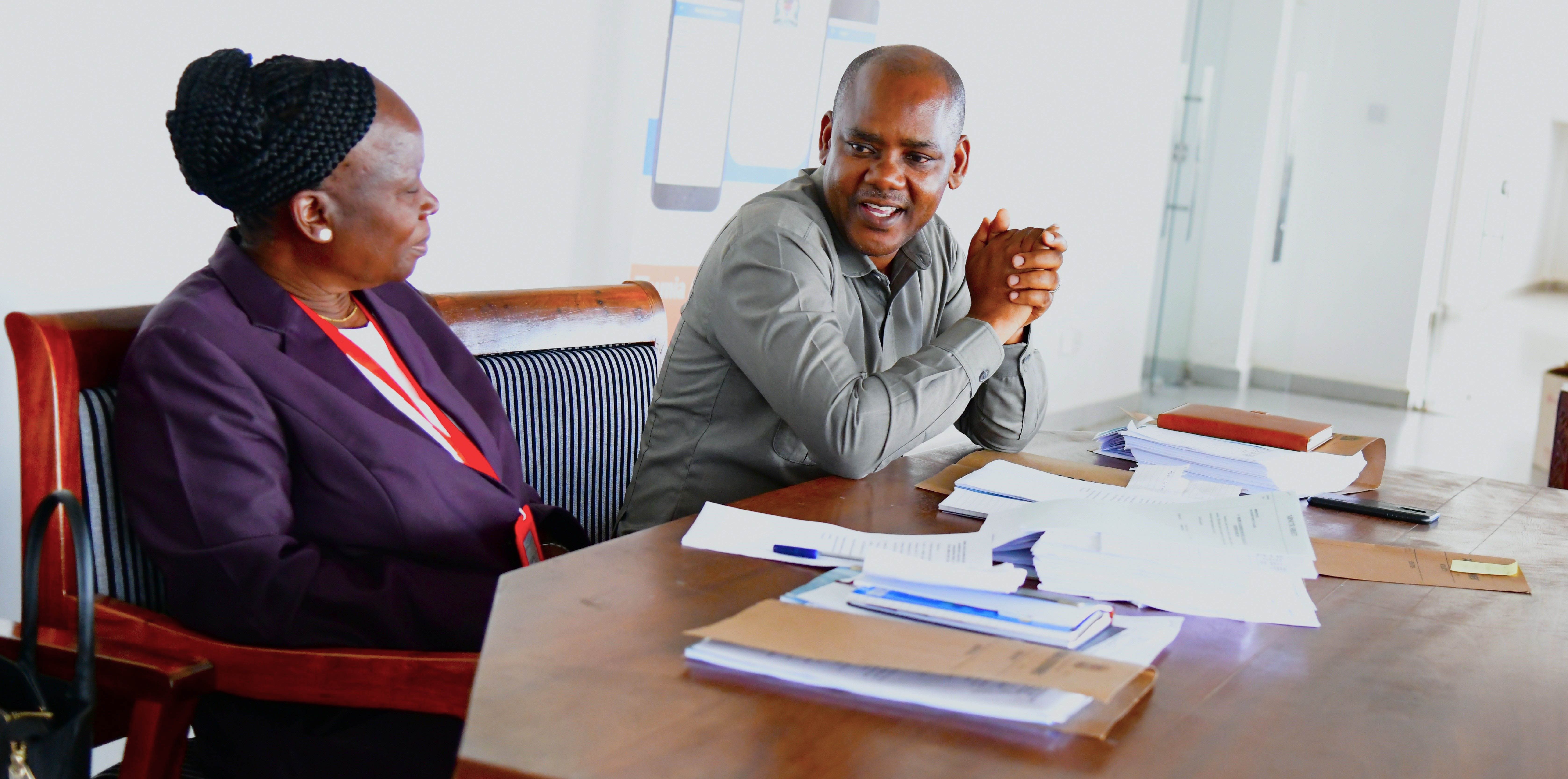 Afisa Utumishi Mwandamizi katika Sekretarieti ya Ajira Bi. Judith Usangira akipata ufafanuzi wa masuala ya Watumishi kutoka kwa Afisa Utumishi Bw. Imani Kasagara.